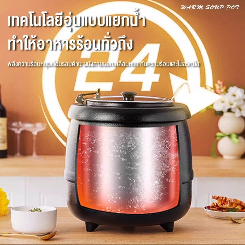 MBK 10Lหม้ออุ่นซุปไฟฟ้า หม้ออุ่นซุป เครื่องอุ่นซุป หม้ออุ่นโจ๊ก หม้ออุ่นข้าวต้ม หม้อต้มซุป วัสดุสแตนเลส 304 หนา