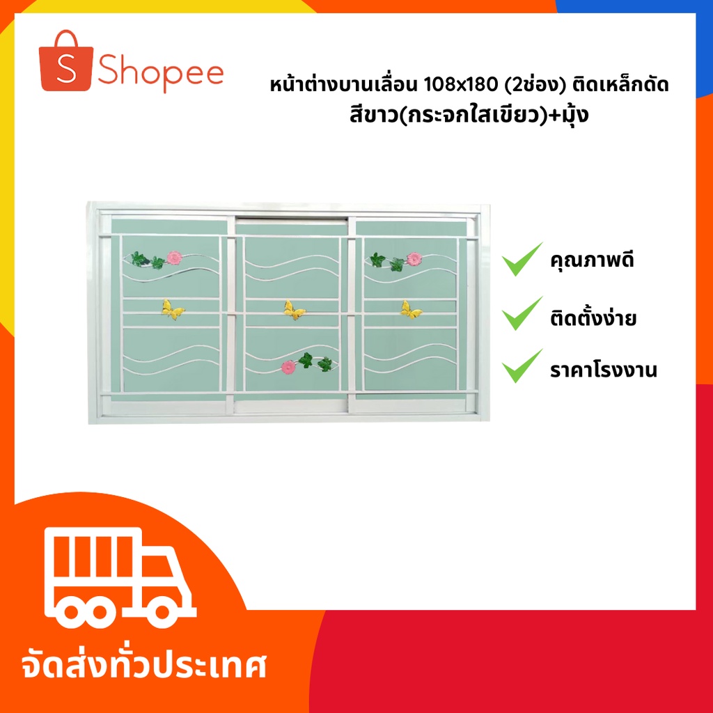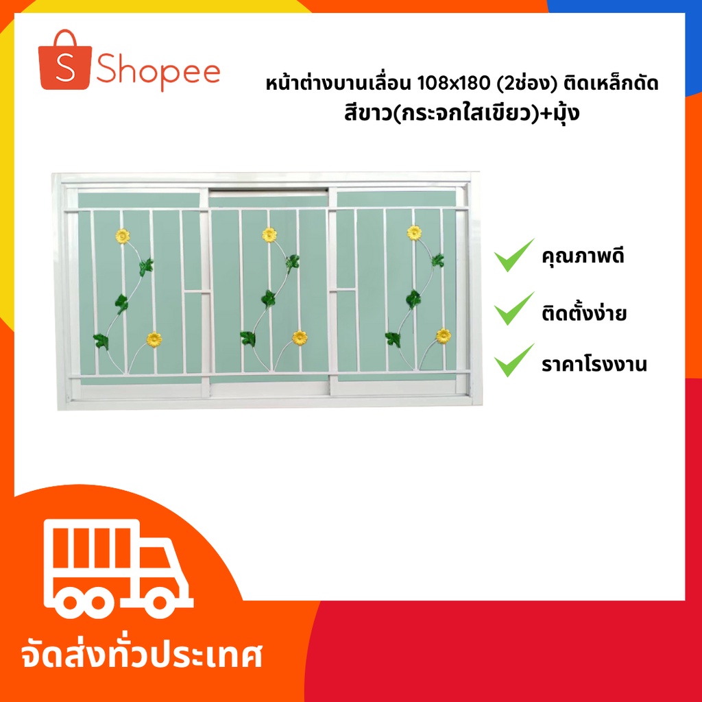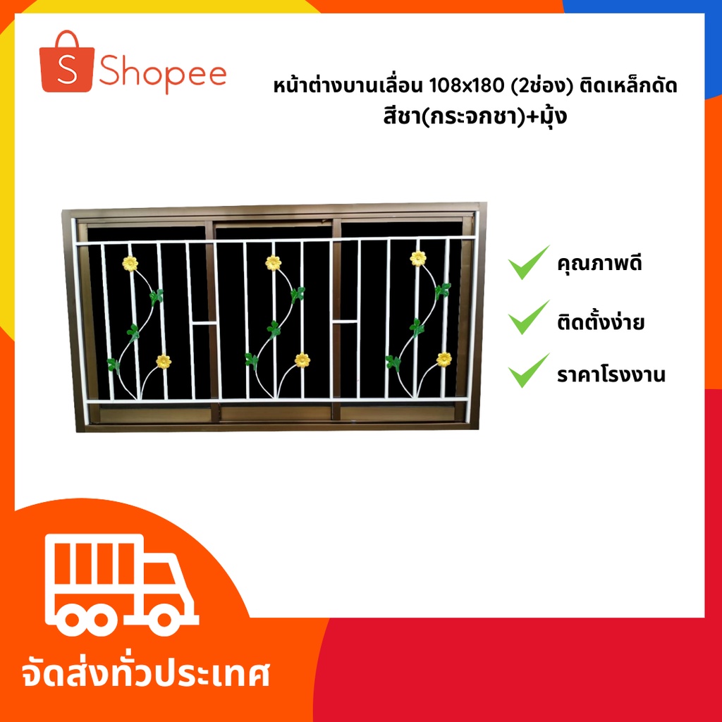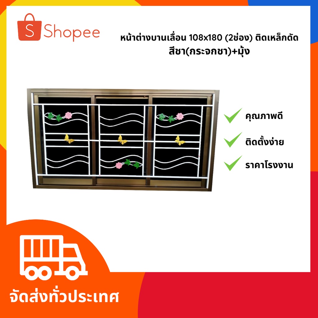 สินค้าราคาโรงงาน‼️ หน้าต่างบานเลื่อน 100x180 (3ช่อง) อลูมิเนียม พร้อมเหล็กดัด