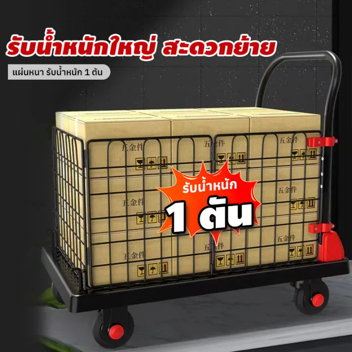 รถเข็นรั้ว รถเข็นแบบมีรั้ว 4ล้อ รถเข็นพับได้ 90*60cm 5/6นิ้ว รับน้ำหนัก 1000KG รถเข็นแบน แข็งแรง ทนท