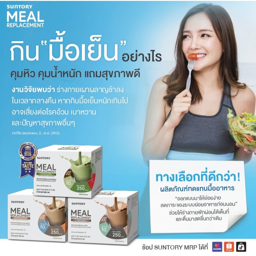 Meal Replacement Suntory [MRP เซ็ท ชาเขียว 2 กล่อง + กาแฟ 1 กล่อง] ผลิตภัณฑ์ทดแทนมื้ออาหาร - exp.12/26