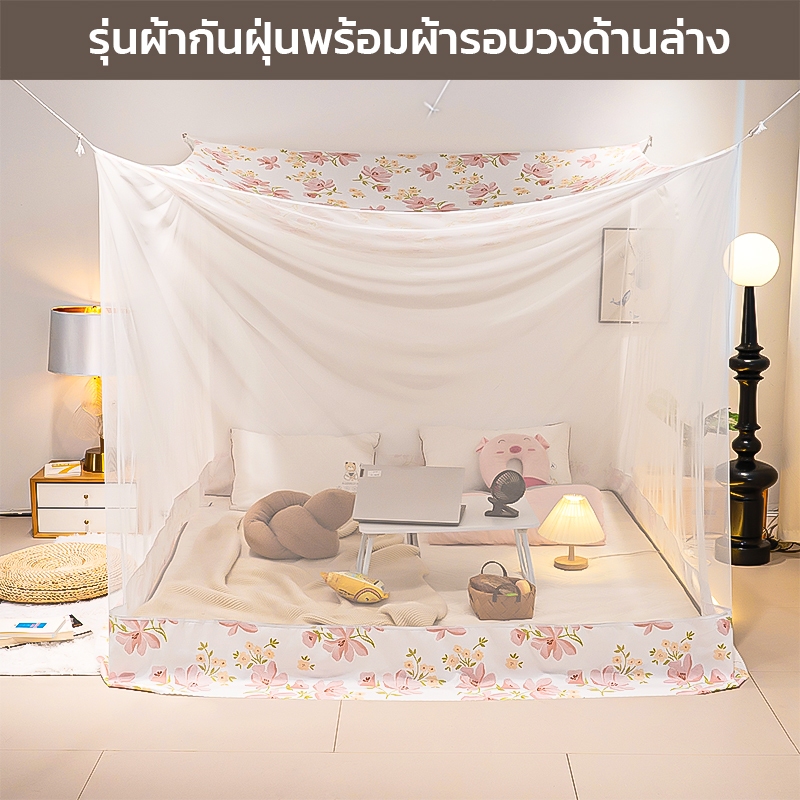 มุ้งกันยุง รุ่นประหยัด ขนาด 4-12 ฟุต หลังคาผ้าโพลี กันฝุ่นกันแสง สำหรับ 1-7 คน รุ่นประหยัด