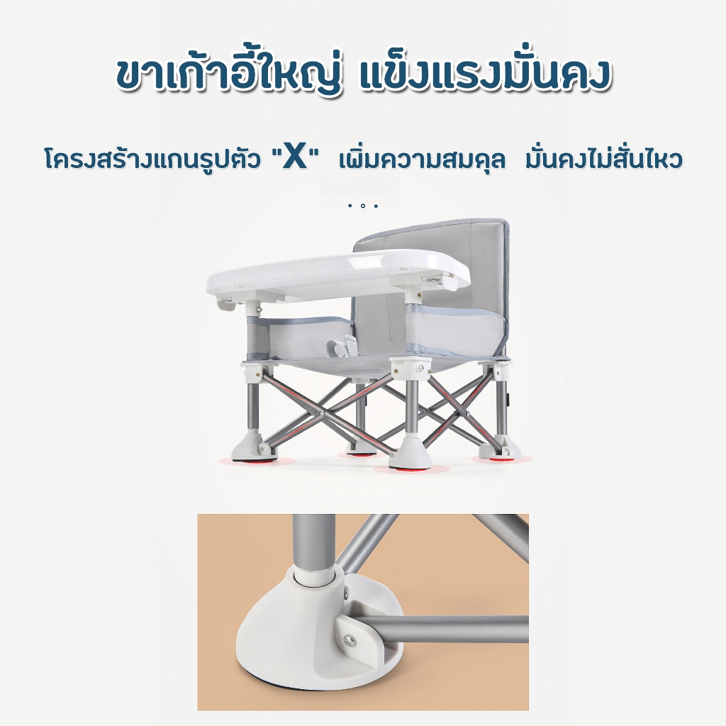 PlayPark เก้าอี้ทานข้าวเด็ก เก้าอี้เด็กเตี้ย พับเก็บสะดวก แบบเตี้ย มีถาดอาหาร+เข็มขัดนิรภัย