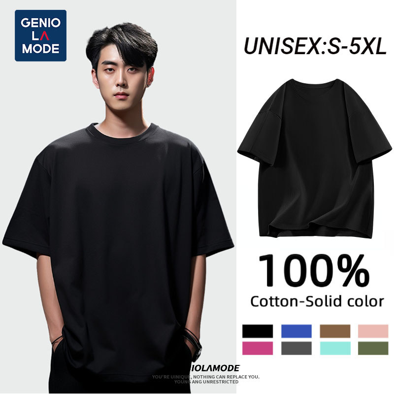 【สินค้าพร้อมส่ง】ผ้าฝ้ายแท้ GENIO LAMODE สีพื้น แขนสั้น ใส่ได้ทั้งผู้ชายและผู้หญิง เหมาะสำหรับวัยรุ่น
