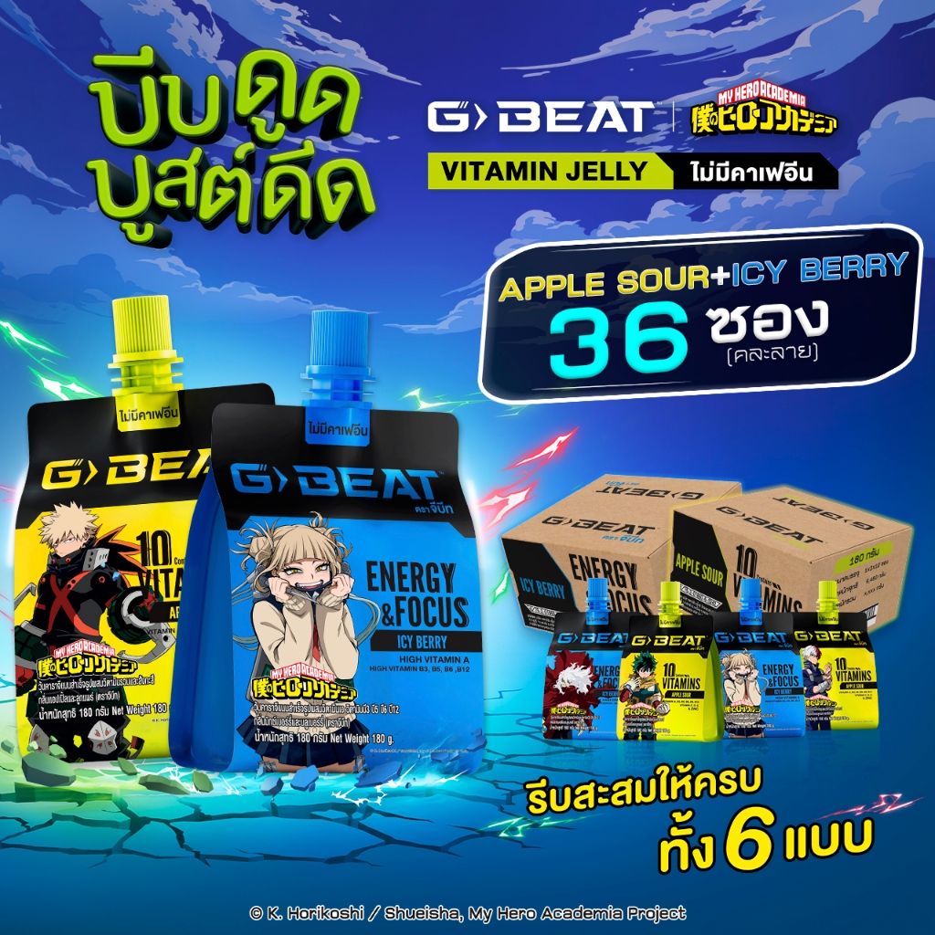 G-BEAT x MHA : ICY BERRY JELLY & APPLE SOUR JELLY 180g. PACK36 แถมฟรี !! เสื้อ MHA (สุ่มลาย)