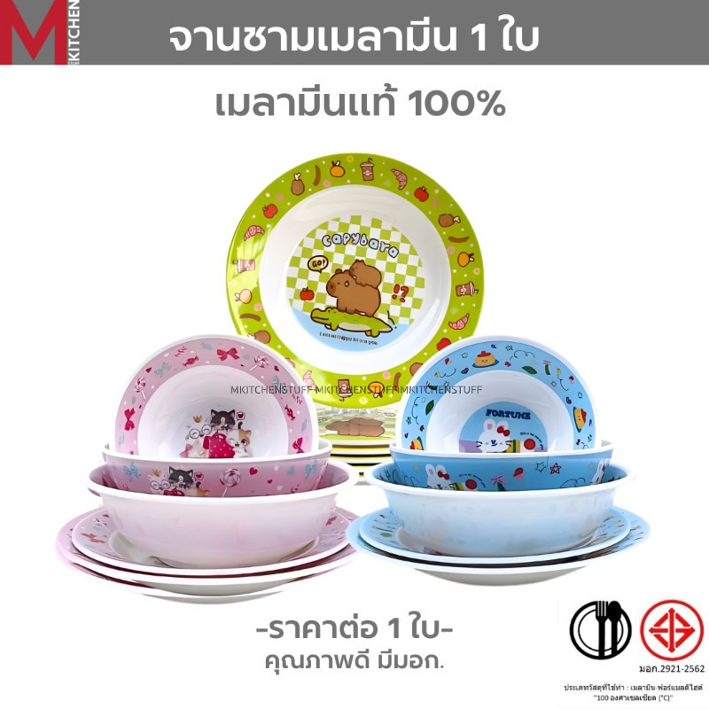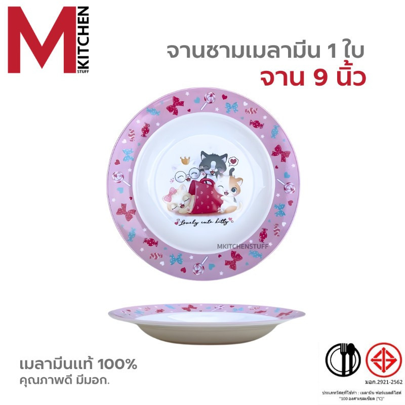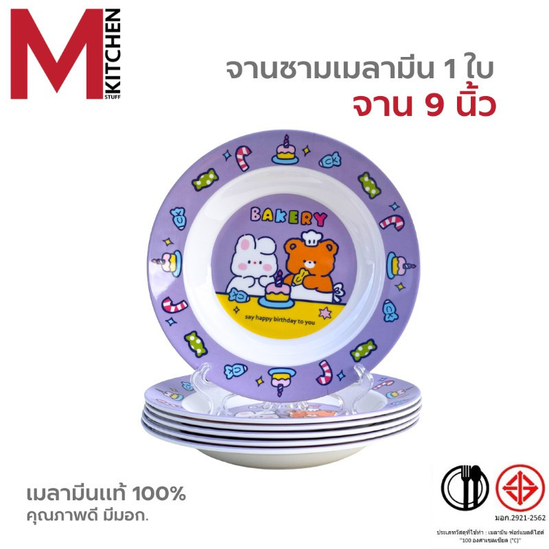 M KITCHEN จาน ชาม ถ้วย จานข้าวเด็ก เมลามีน แท้100% ลายการ์ตูน มีให้เลือกหลายขนาด (A3)