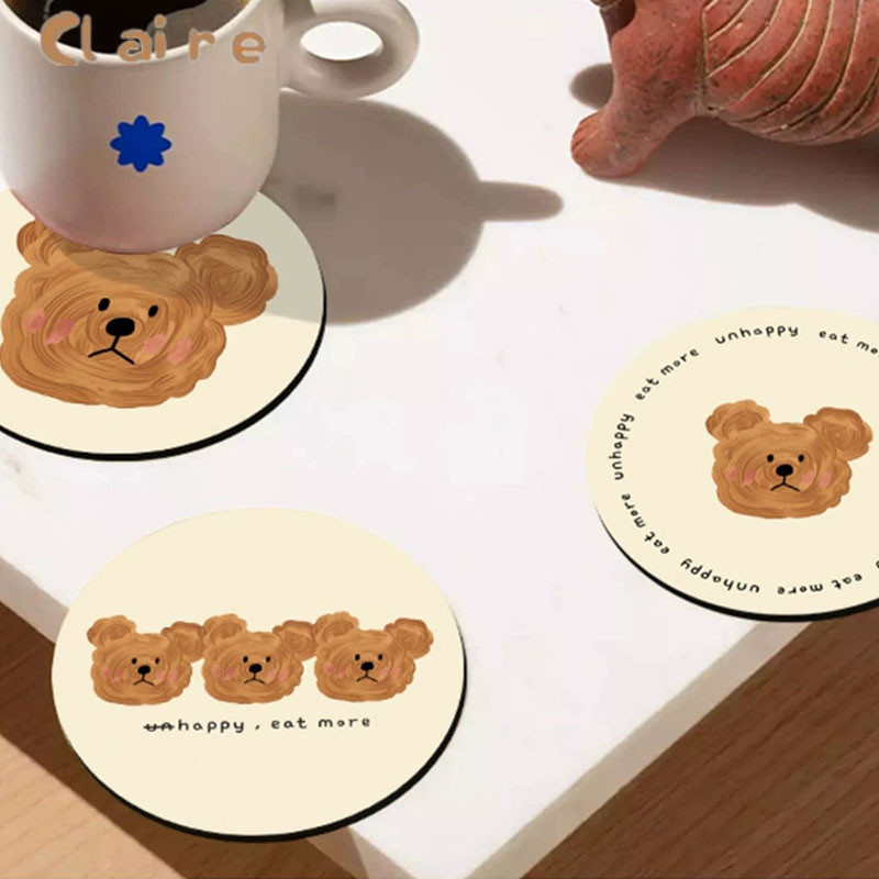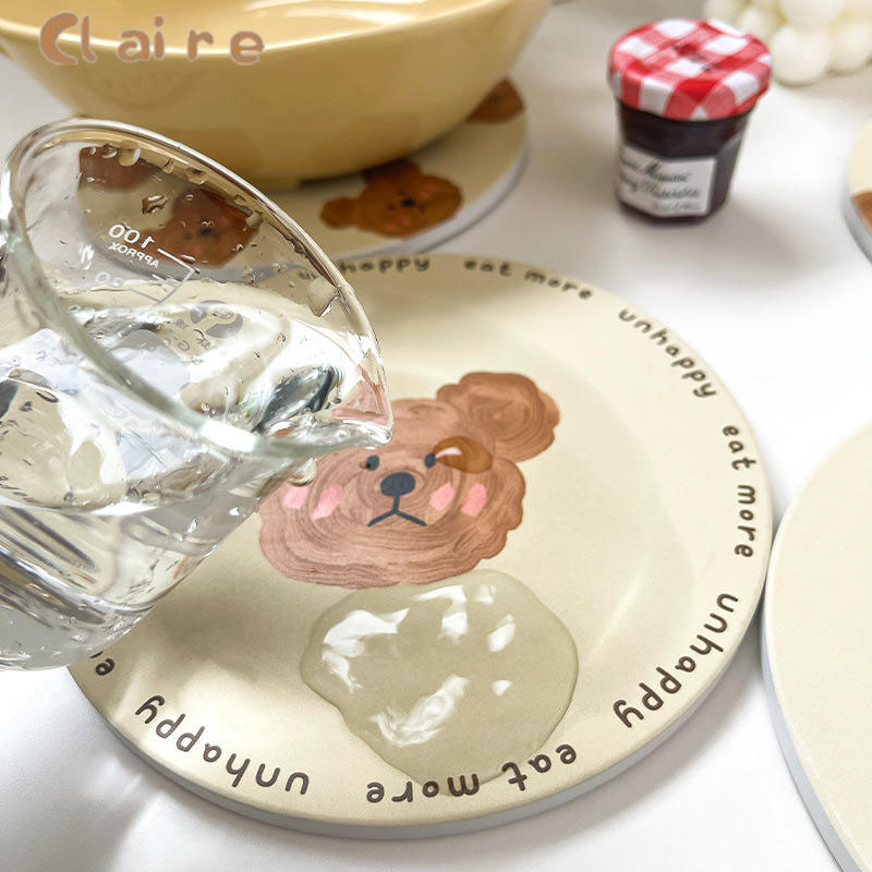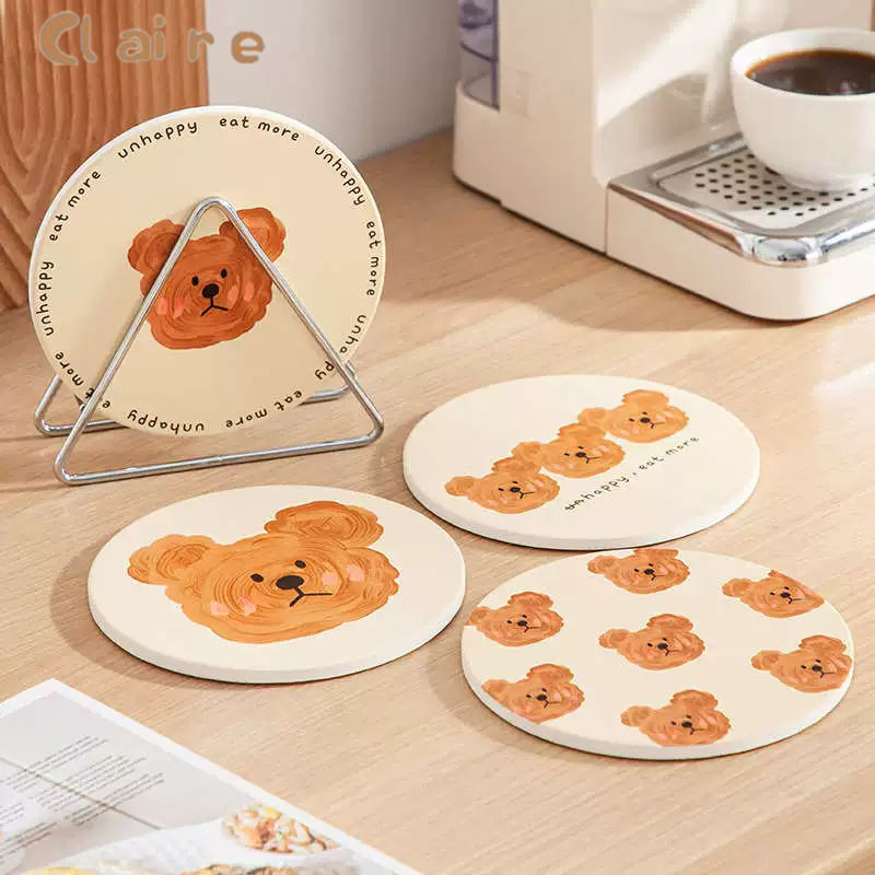 COD ที่รองแก้ว ลายหมี Bear สุดน่ารัก ที่รองแก้วซับน้ำ แผ่นหินรองแก้วดูดซับน้ำ 14*14cm Claire