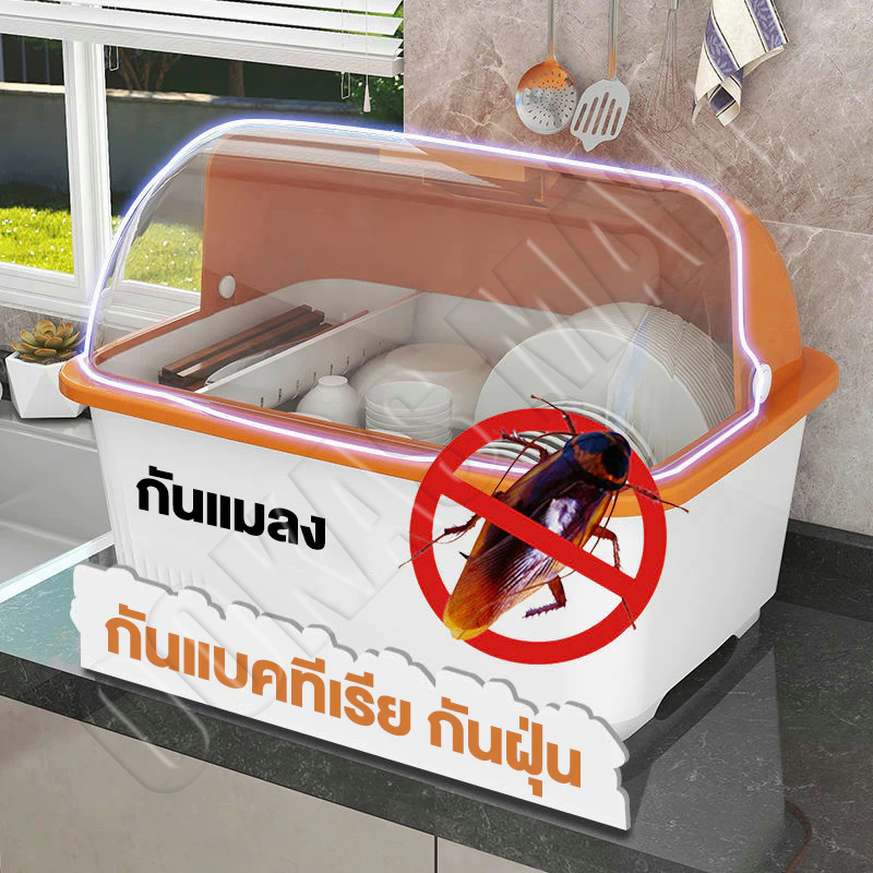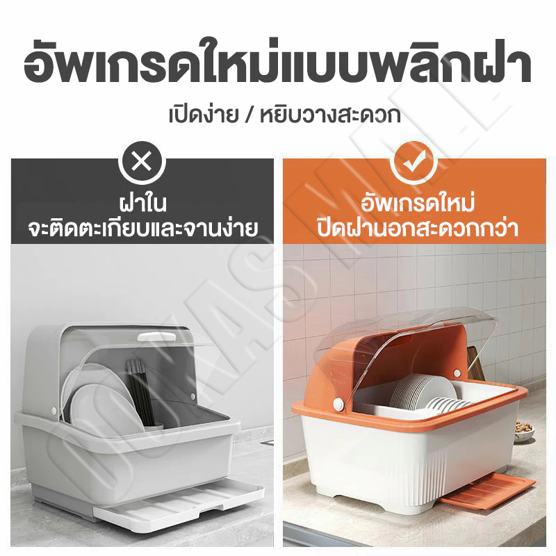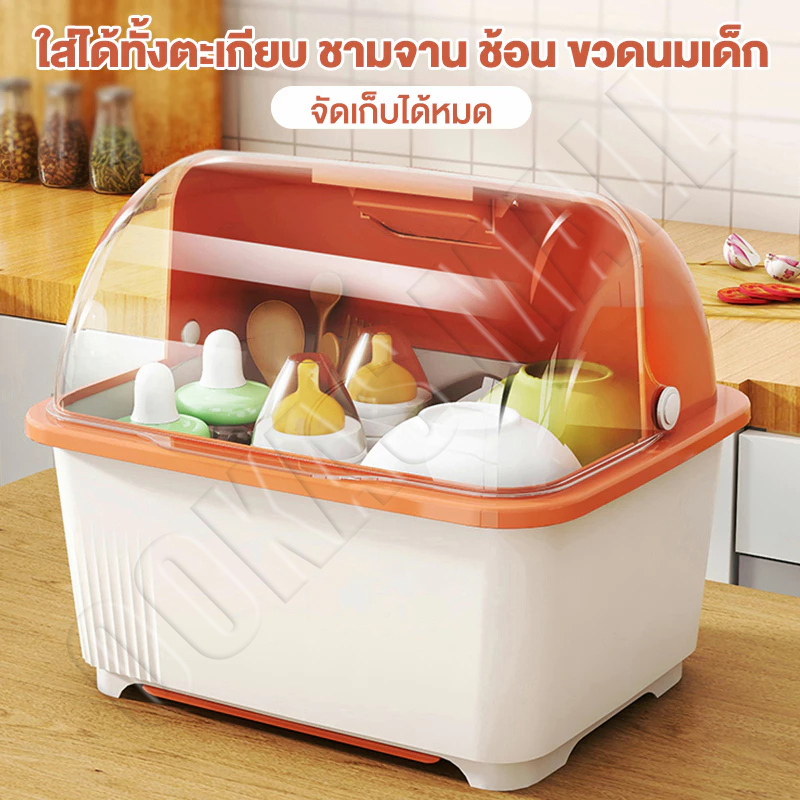 Ookas ที่คว่ำจาน มีฝาปิด จุมาก เก็บได้ทั้งจาน ชาม ช้อนส้อม มีรางน้ำหยด กันฝุ่นละออง กันแมลง