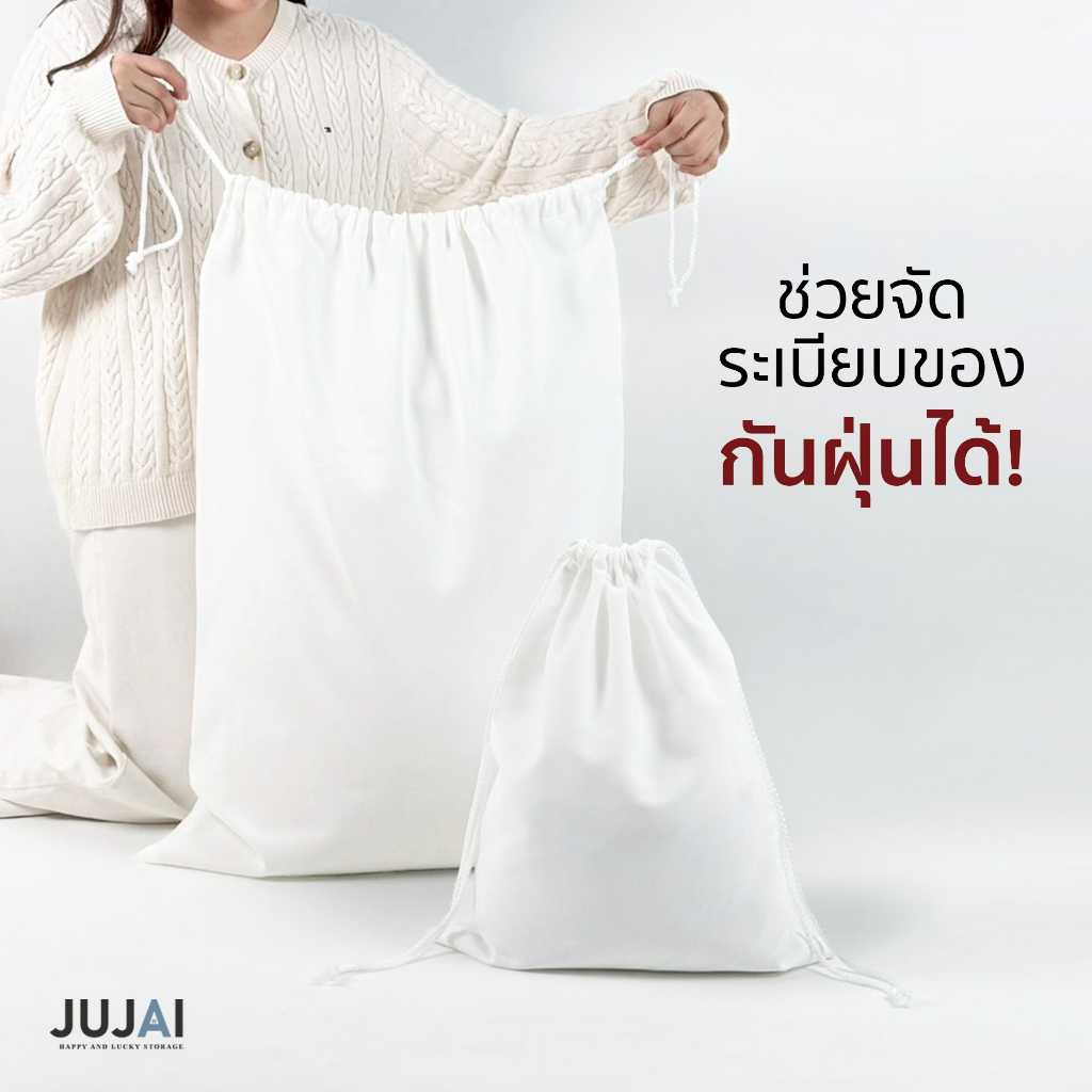 ถุงผ้าดิบเชือกรูดเอนกประสงค์🎯 คุณภาพดี ทนทาน เหมาะสำหรับการจัดเก็บ เสื้อผ้า, ของใช้ ใช้งานสะดวก พกพาง่าย 🧺🧵