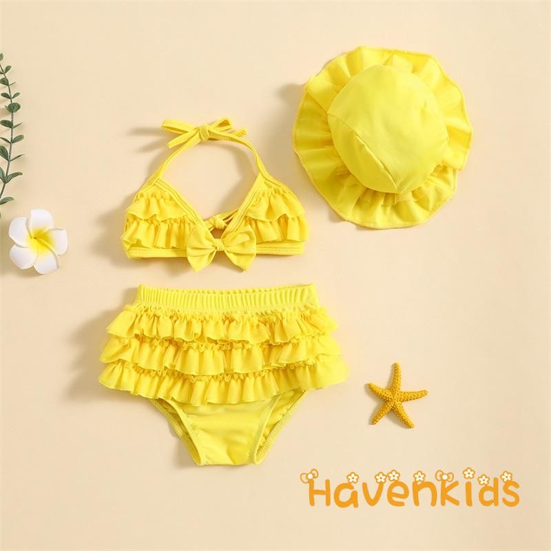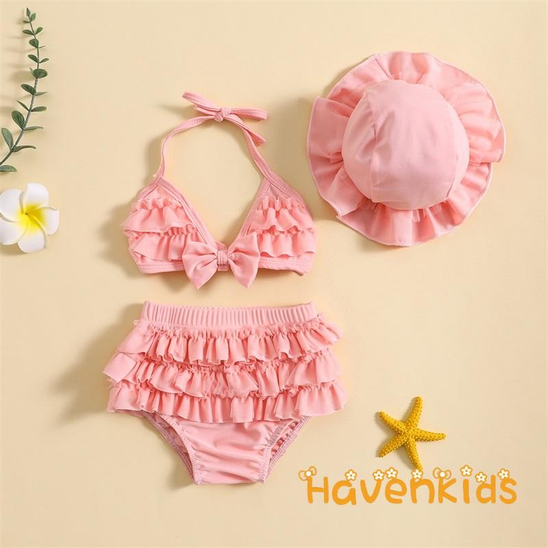 HaK - ชุดว่ายน้ำสำหรับทารกและBABY อายุ 0-24 เดือน แบบแขวนคอกับกางเกงขาสั้น พร้อมหมวก มีให้เลือก 4 สี