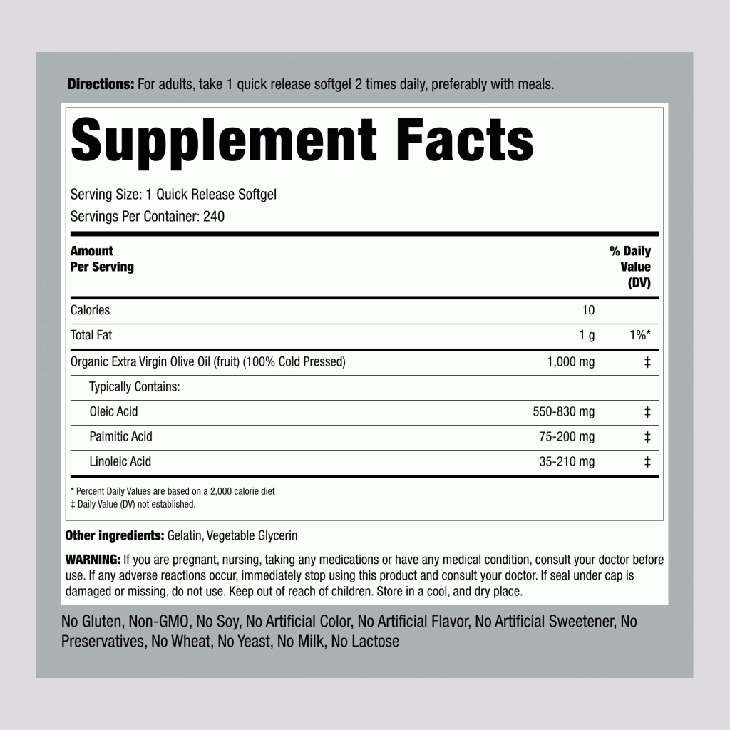 Piping Rock Olive Leaf Extract 9000mg | Olive Oil 1000mg |เสริมภูมิคุ้มกัน บำรุงหัวใจ|120/240 แคปซูล
