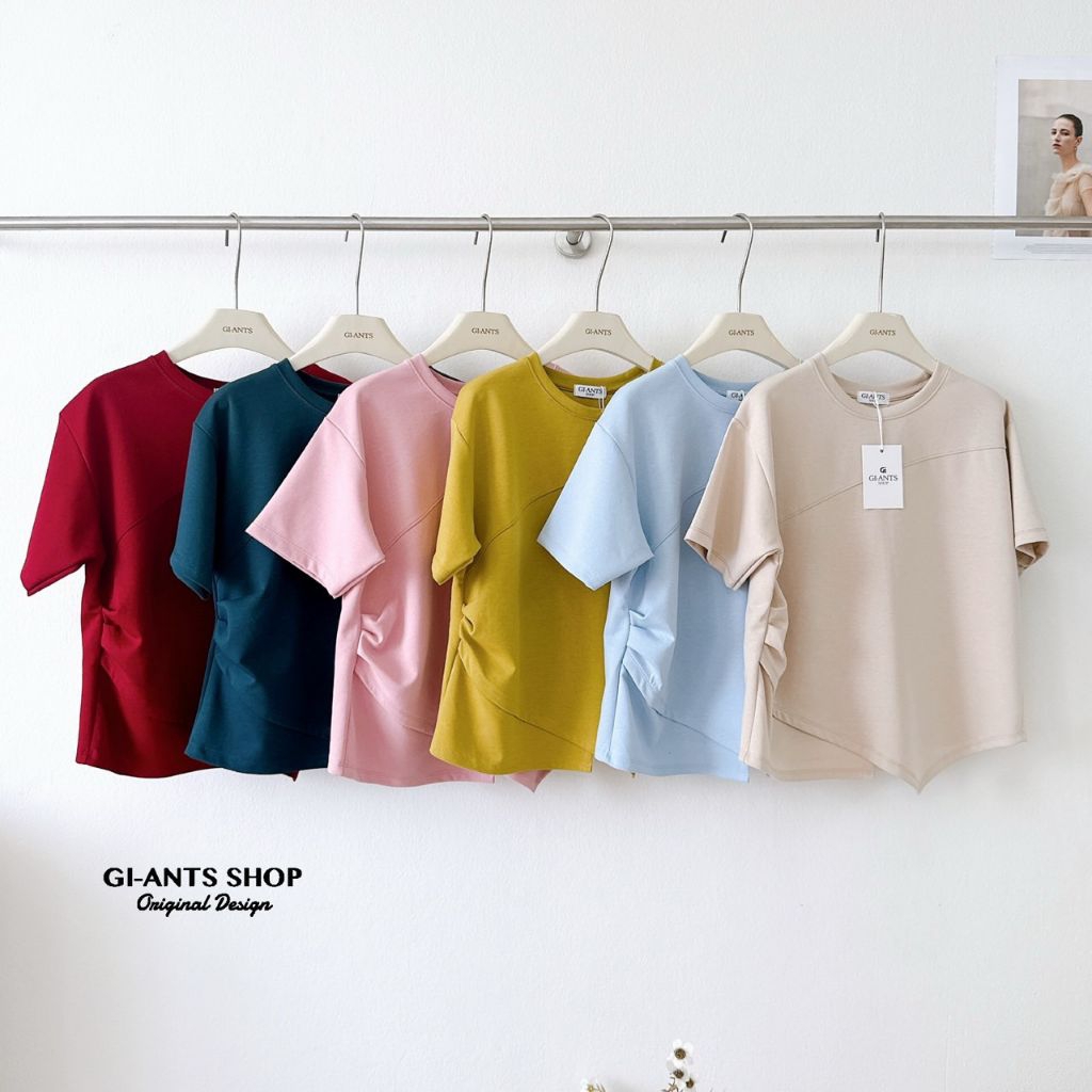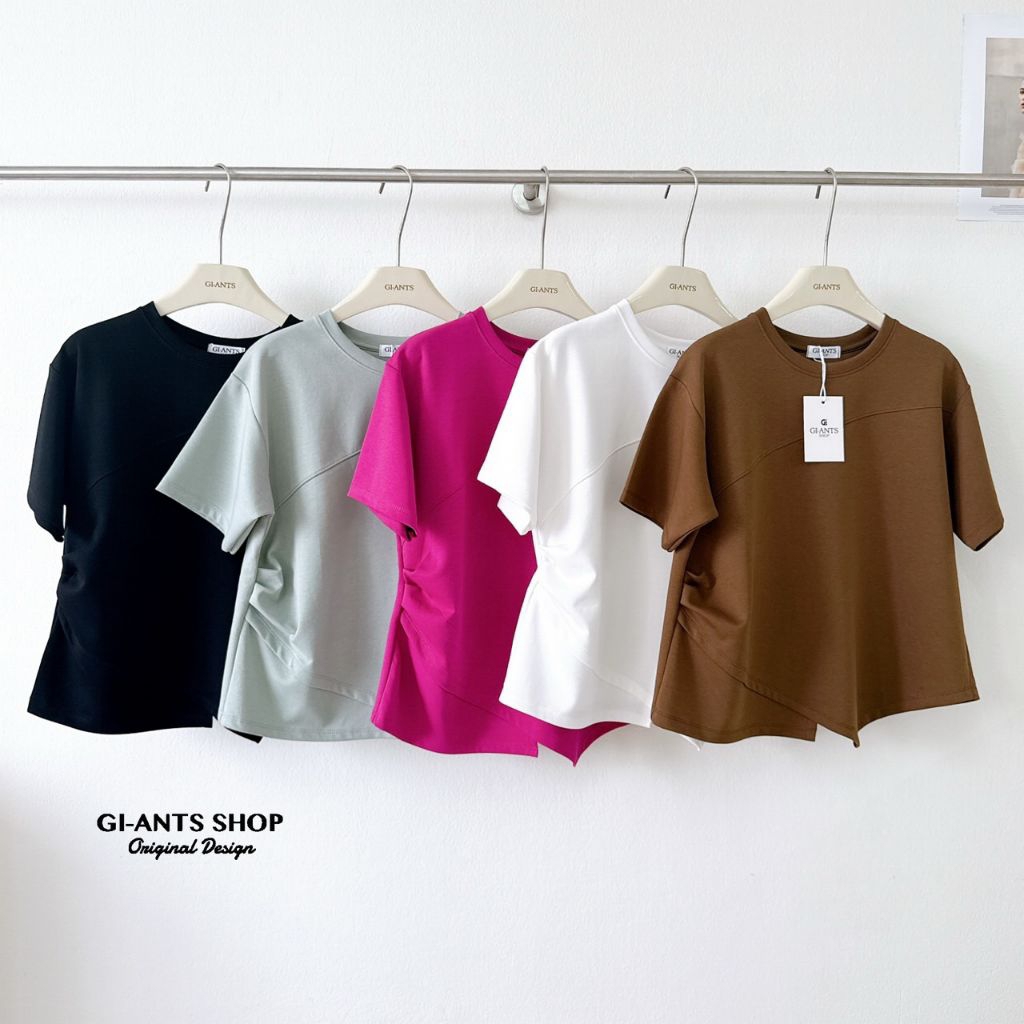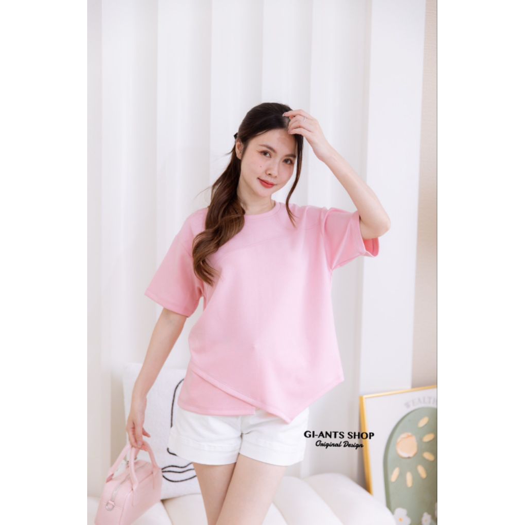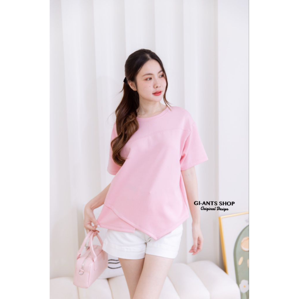 G1381 คอกลมสีพื้นชายเฉียง