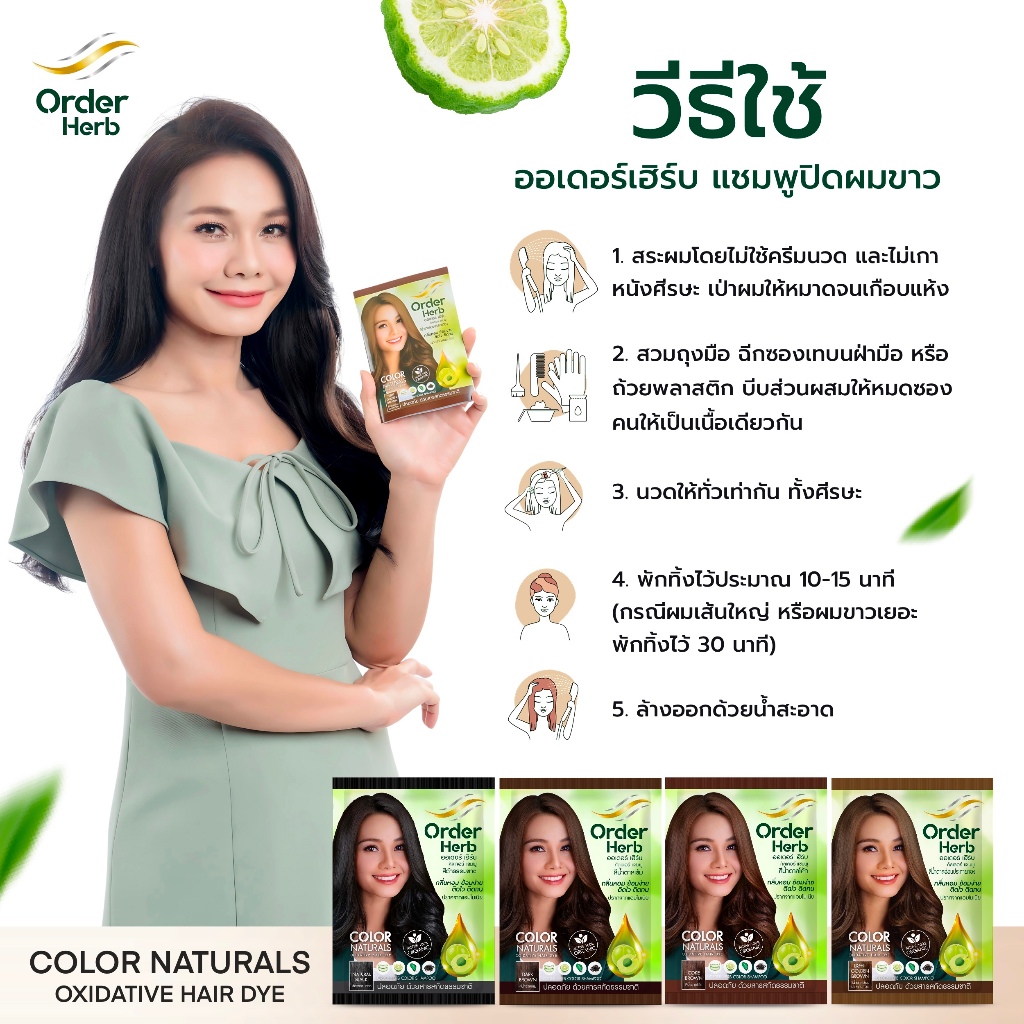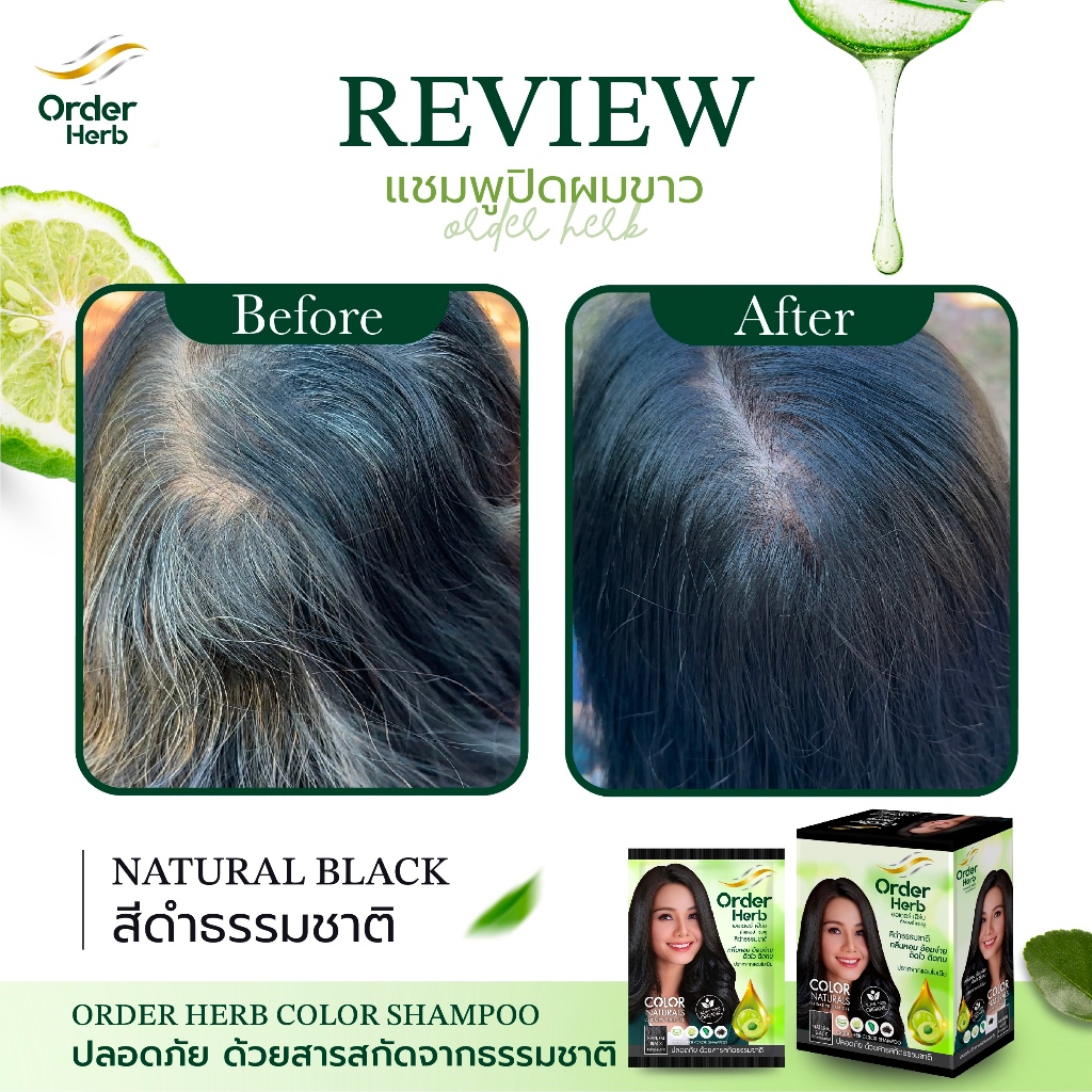 [2 กล่อง] 12 ซอง แชมพูปิดผมขาวออเดอร์เฮิร์บ ปริมาณซองละ 30 มล.