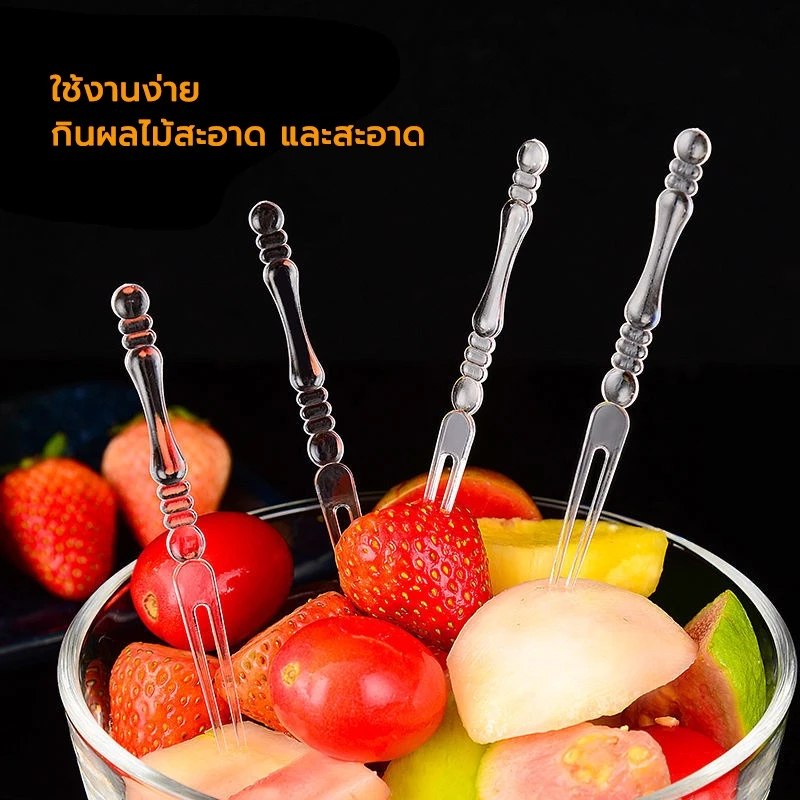 BLIVO ส้อมจิ้มผลไม้พลาสติก 100 ชิ้น ส้อมพลาสติก สำหรับจิ้มเค้ก ขนมหวาน ผลไม้ ไม้จิ้มผลไม้ พร้อมส่ง
