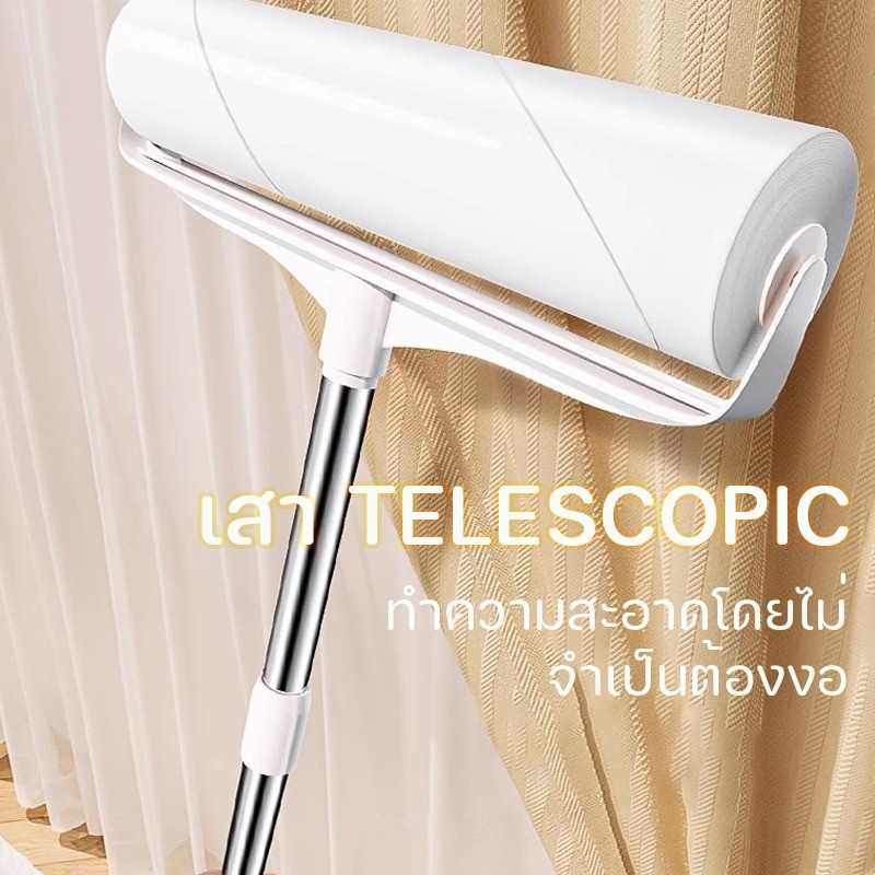 ลูกกลิ้งเก็บขน ลูกกลิ้งทำความสะอาด ด้ามจับปรับความยาวได้ 24-124cm ลูกกลิ้งขจัดฝุ่น กระดาษกาว เก็บฝุ่นเก็บขนสัตว์เลี้ยง