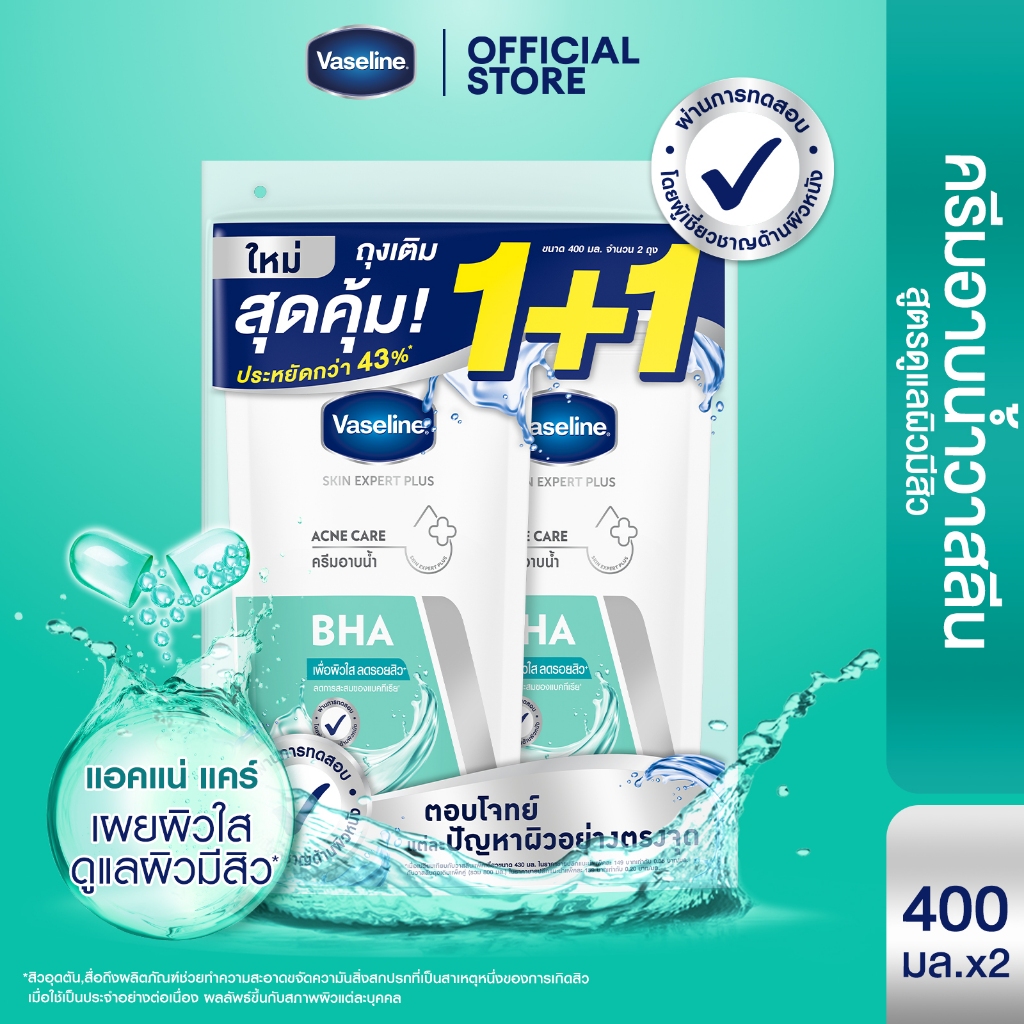 ครีมอาบน้ำวาสลีนสูตร Skin Expert Plus ที่ช่วยบำรุงผิวให้ดูสุขภาพดีตั้งแต่อาบน้ำเลยครับ ฟองนุ่มละเอียดล้างออกง่ายและไม่ทำให้ผิวแห้งตึง มีหลายสูตรให้เลือกตามสภาพผิว แพ็คคู่สุดคุ้มให้ปริมาณจุใจพรีเมียมราคาประหยัดที่สุดครับ