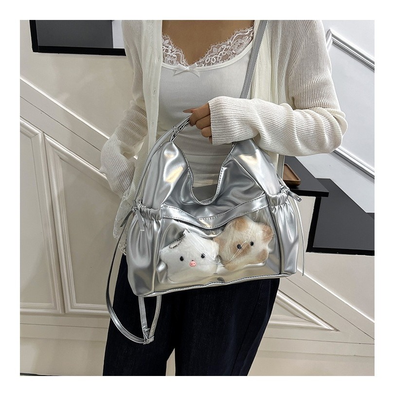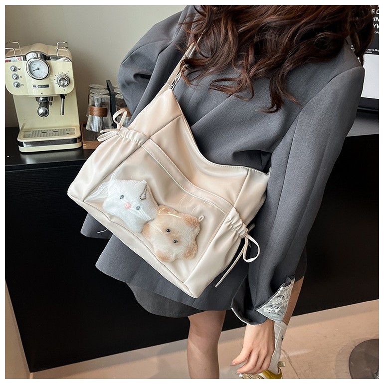กระเป๋าสะพายไหล่แฟชั่นสตรี ดีไซน์โบว์ กระเป๋าสะพายข้างทรงเรียบง่ายสไตล์เกาหลีความจุขนาดใหญ่ เหมาะสำหรับออกไปข้างนอก