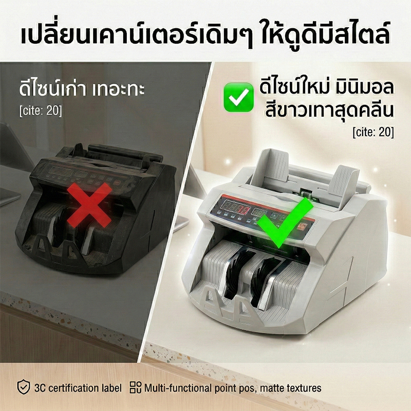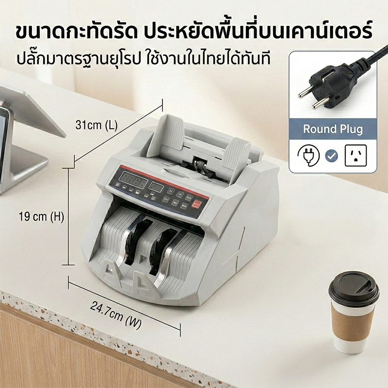 เครื่องนับแบงค์ Bill Counter ดีไซน์ทันสมัย สำหรับร้านค้า/คาเฟ่ ตรวจธนบัตรปลอม UV แม่นยำ