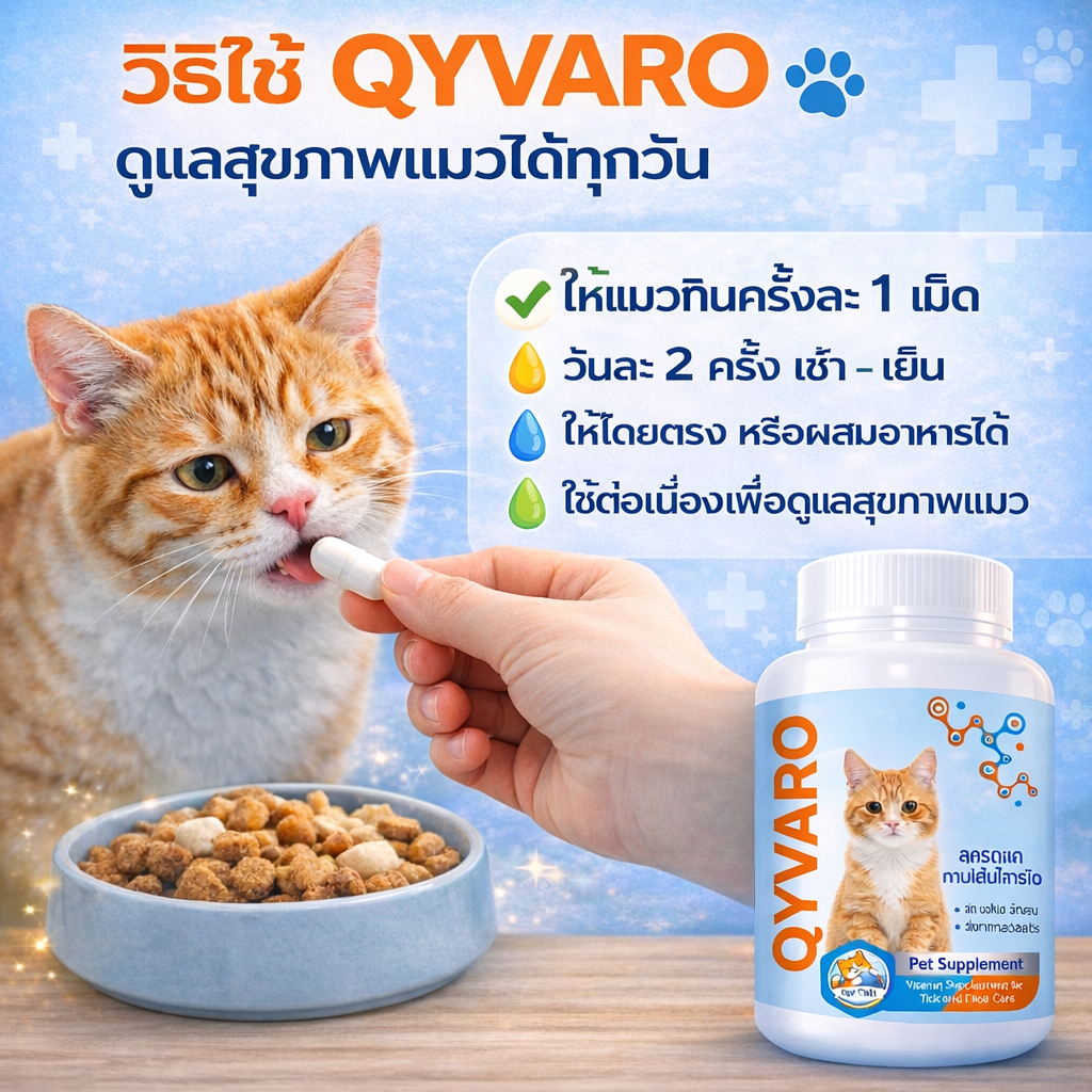 QYVARO อาหารเสริมแมว ดูแลแมวไม่สบาย หวัดแมว จาม น้ำมูกไหล เสริมภูมิแมว บำรุงทางเดินหายใจ