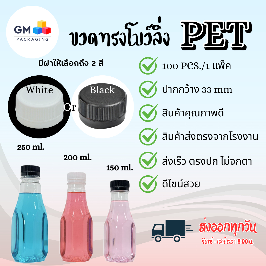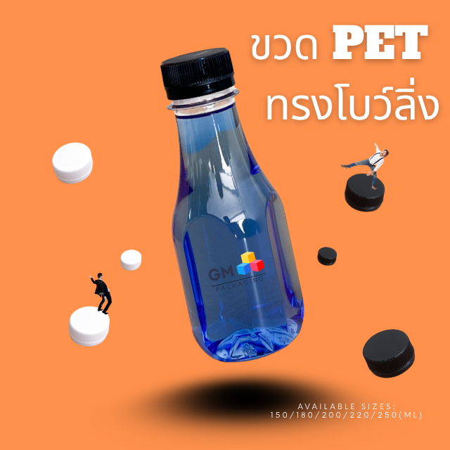 ขวดพลาสติก PET ขวดทรงโบว์ลิ่ง 200ml (แพ็ค 100 ขวดพร้อมฝา)