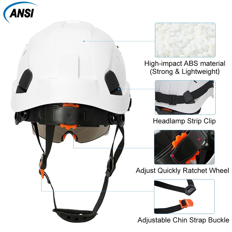 AOLAMEGS ABS หมวกนิรภัยพร้อมแว่นตาโปร่งใส USB Led ไฟหน้าก่อสร้าง soft light patch ไฟหน้า CE ANSI หมวกแข็งหมวก Night