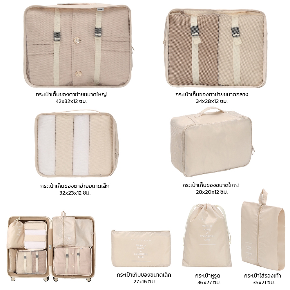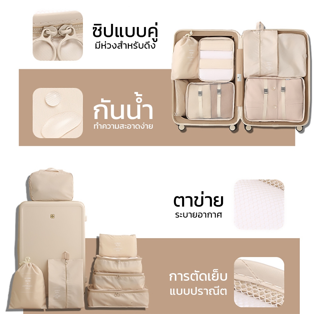 Hanaso กระเป๋าจัดระเบียบ travel bag สีดำ 7 ชิ้นอุปกรณ์เสริมสำหรับเดินทาง ถุงเก็บผ้า ประหยัดพื้นที่ เดินทาง