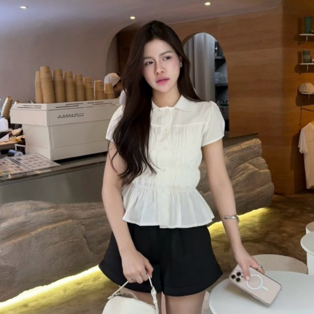 Bua top - เสื้อแขนตุ๊กตาคอบัว แขนพอง กระดุมหน้า ผ้าฝ้ายหนาทรงสวย (คอบัว)