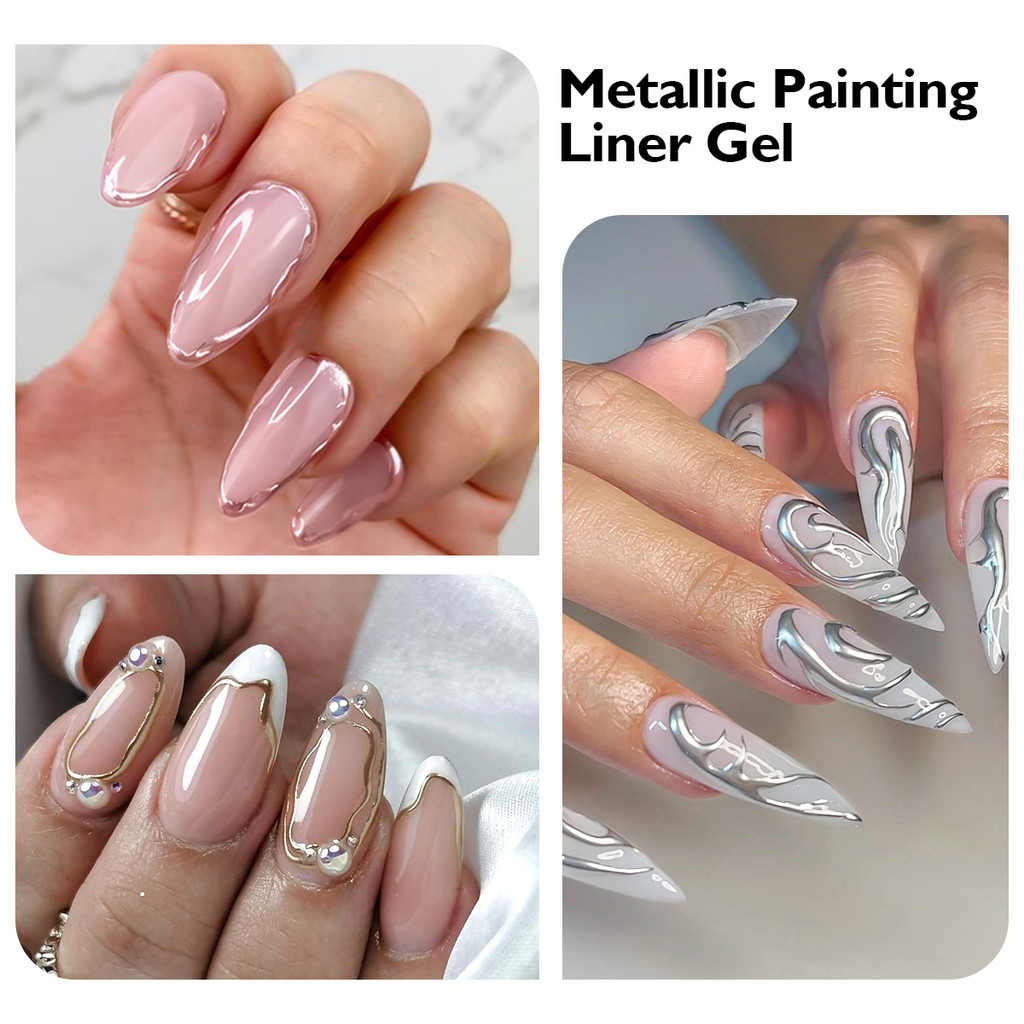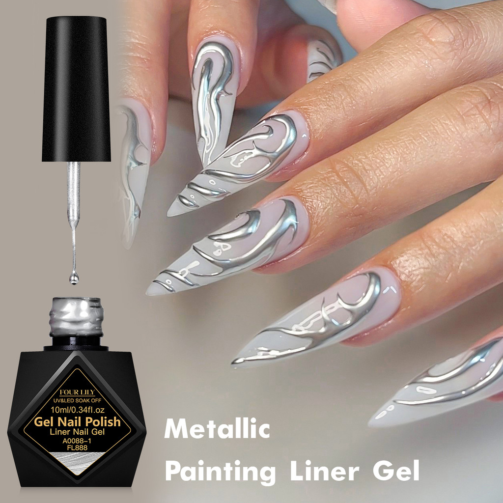 FOUR LILY 10ml ภาพวาดโลหะ ไลน์ เล็บเจลกึ่งถาวร เจลเล็บดีไซน์ครีเอทีฟ เล็บเจล สามารถถอดออกได้ ยูวี/แอลอีดี เล็บเจล
