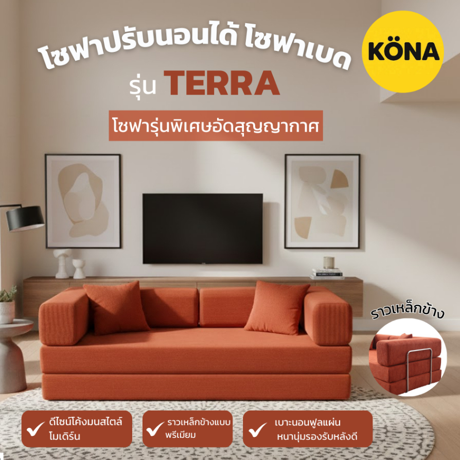 KONA โซฟาเบด ปรับเอนนอนได้ รุ่น TERRA ขนาด 198x101x67 ซม. | โซฟา3ที่นั่ง ปกOR