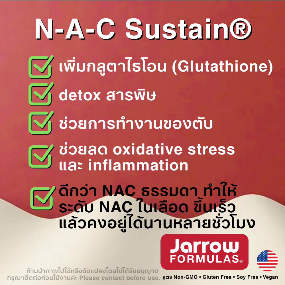 (พร้อมส่งในไทย) Jarrow Formulas NAC Sustain 600mg Glutathione บำรุงตับ กลูตาไธโอนเพื่อผิวกระจ่าง