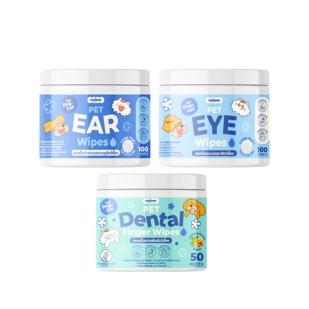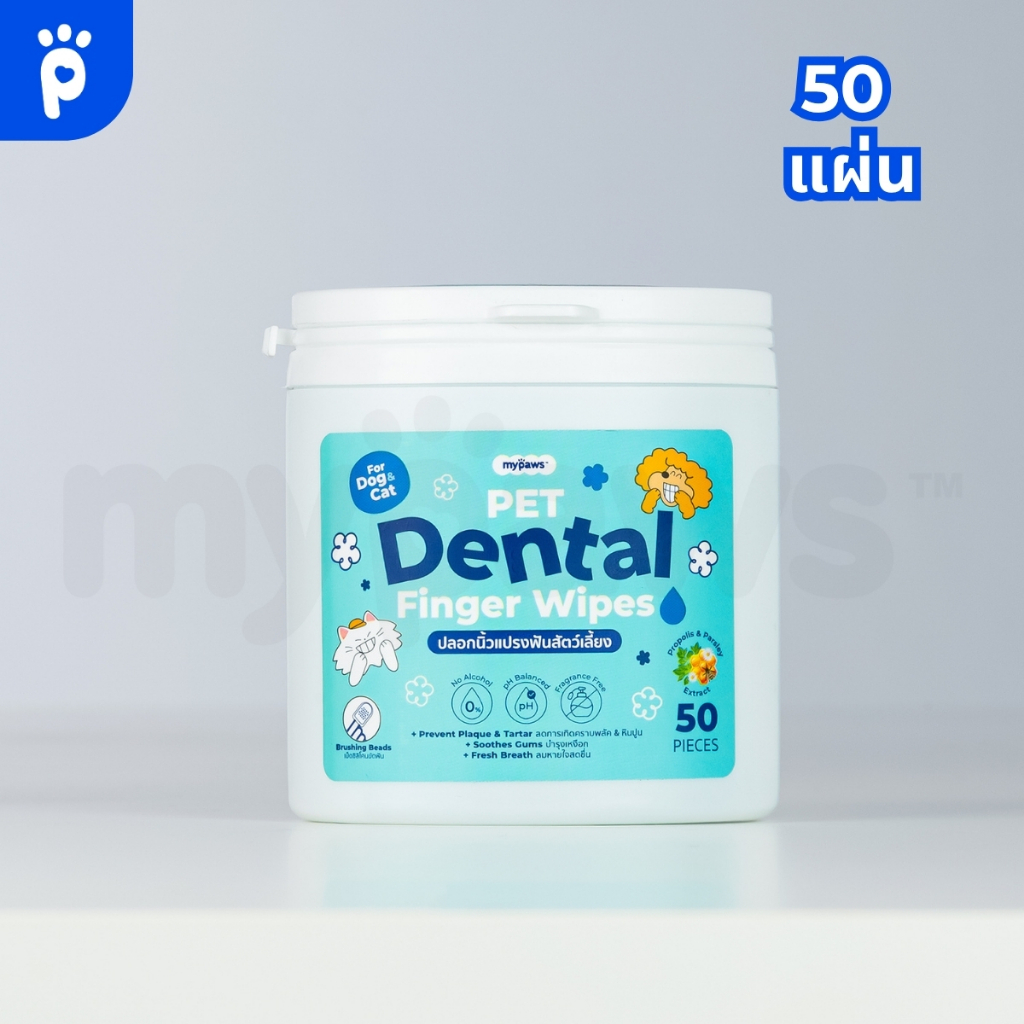 My Paws ปลอกนิ้วขัดฟัน แผ่นเช็ดฟัน Dental Wipes ลดคราบหินปูน ลดกลิ่นปาก ใช้ได้ทั้งสุนัขและแมว