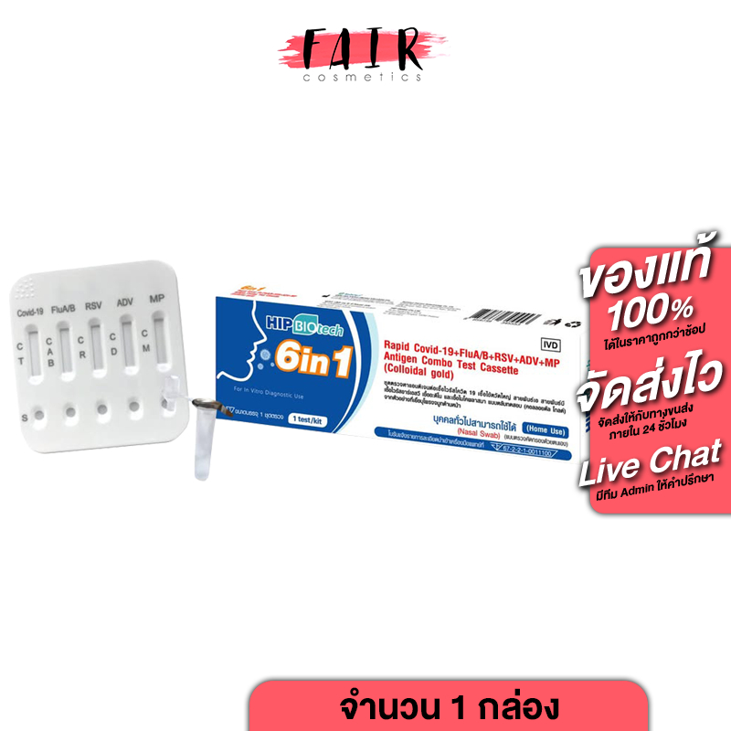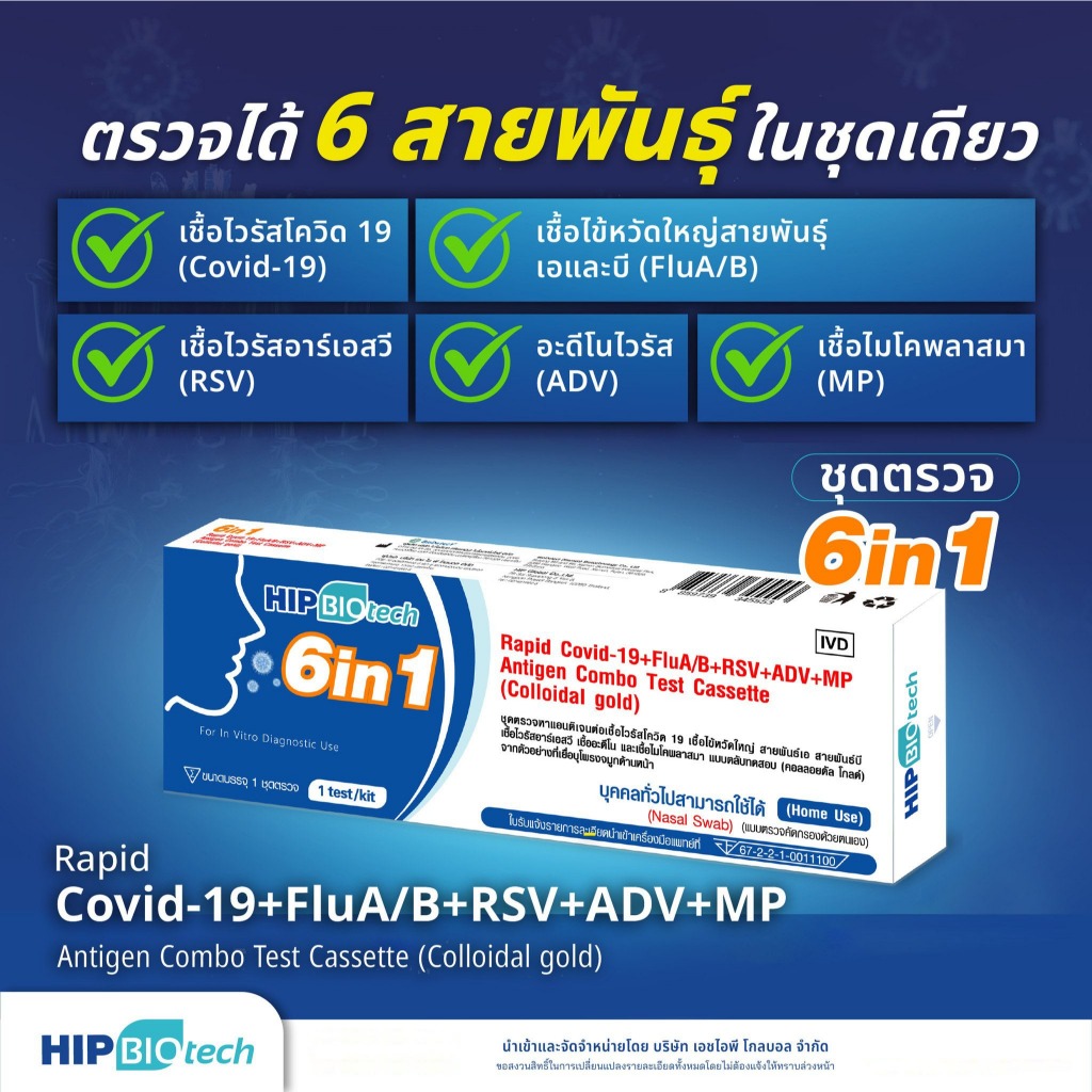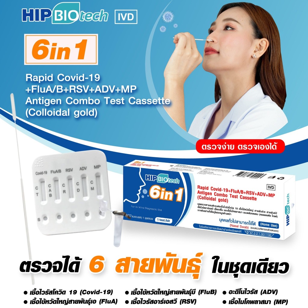 Hip Biotech 6in1 ATK Covid19, Flu A/B, RSV, ADV, MP Antigen Combo Test Cassette [Nasal Swap]