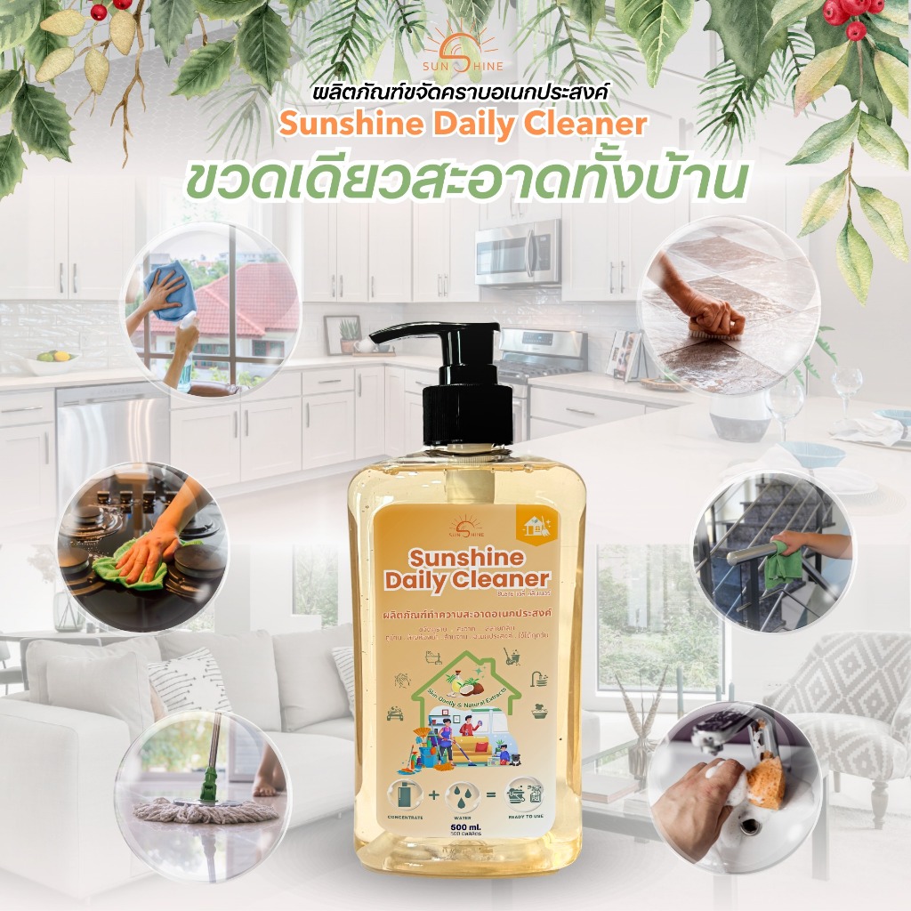 ขจัดคราบน้ำอเนกประสงค์ (sunshine daily) ลดคราบน้ำ คราบฝังแน่นหินปูนและกระจก (ถุงเติม 1000ml.)
