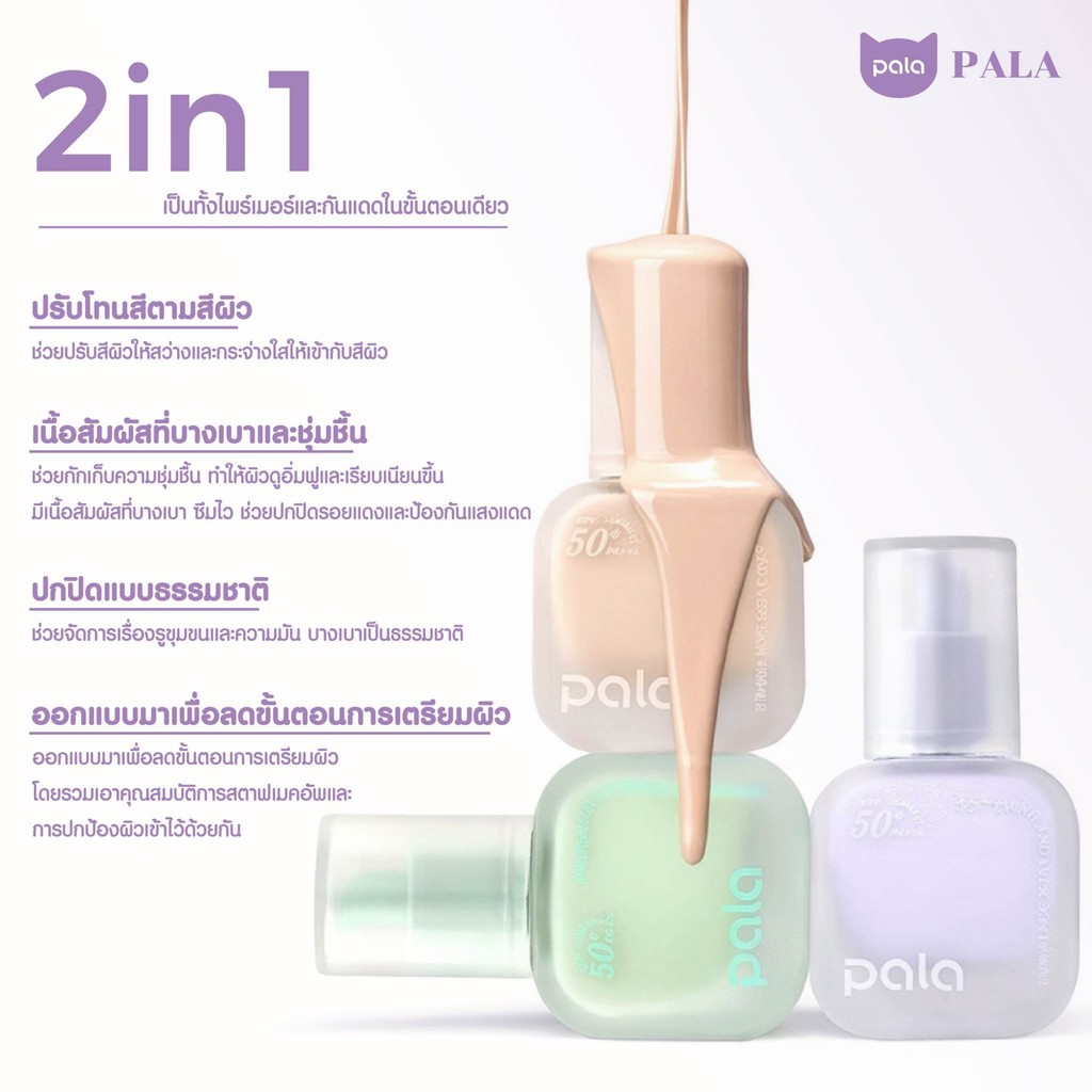 PALA ไพรเมอร์ SOFTENING AND EVEN SKIN PRIMER SPF50+ PA+++ เบลอรูขุมขน เมคอัพเบส แบรนด์ไทย มีอ.ย.