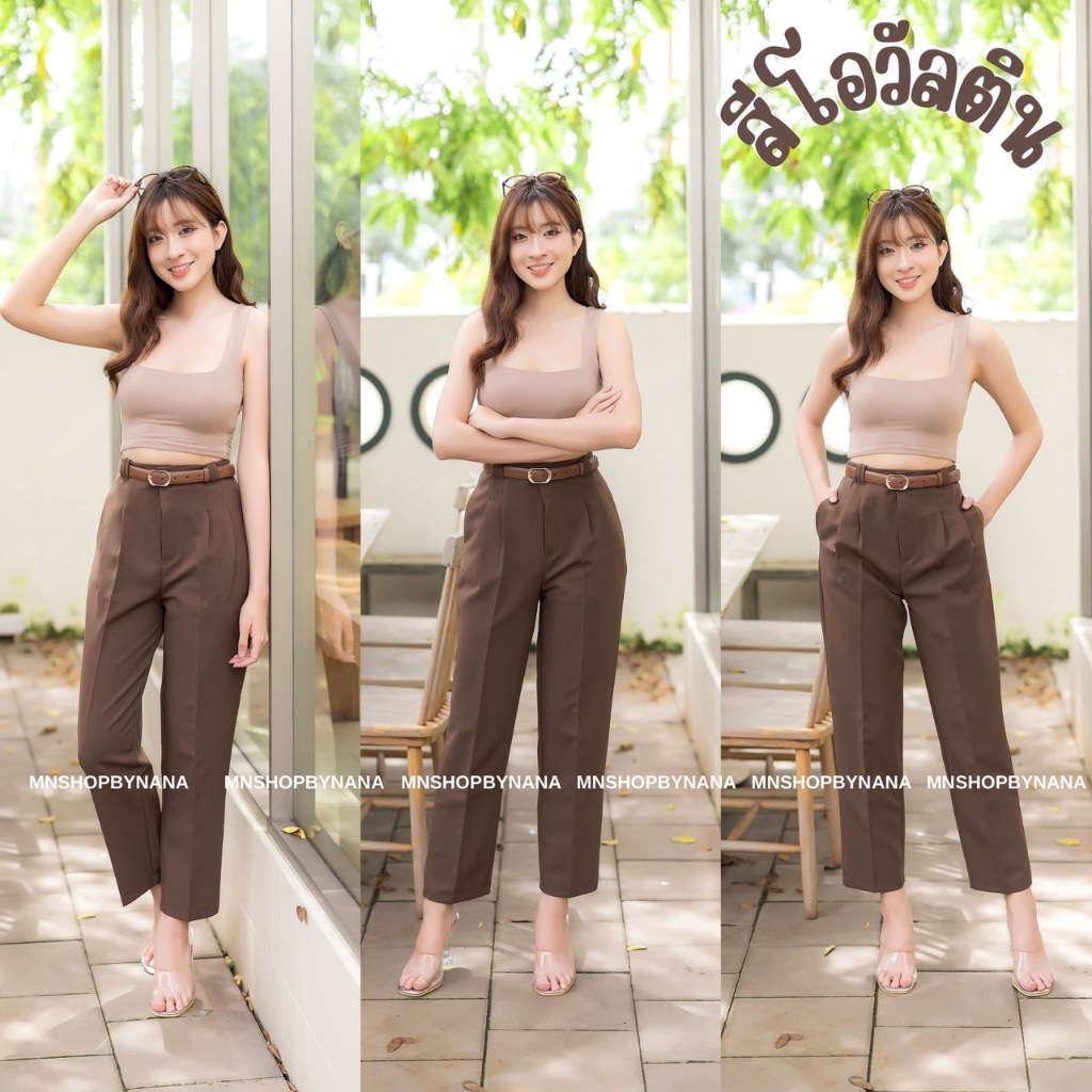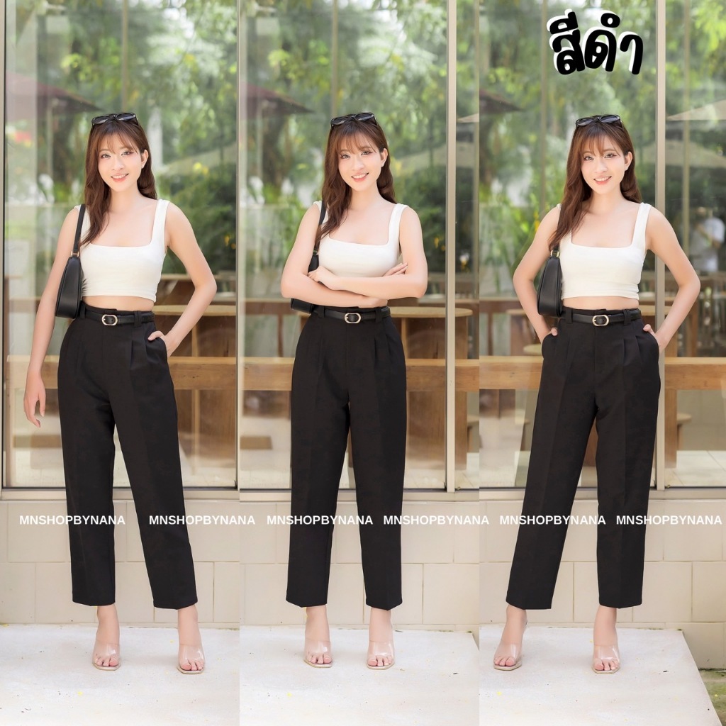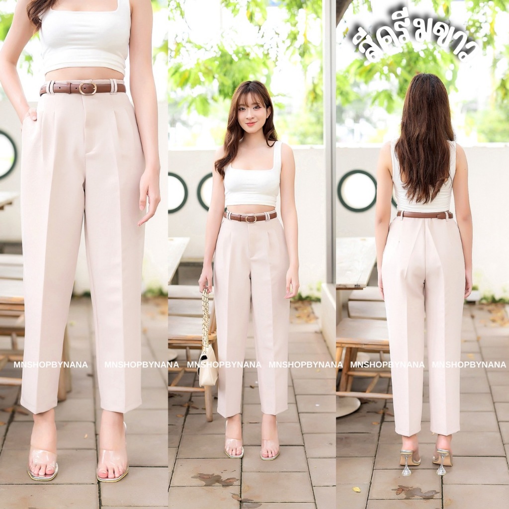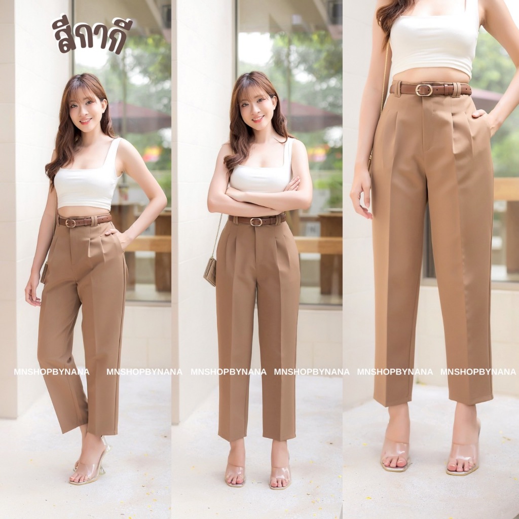 🍒รุ่นGen-Y หูคู่🍒กางเกงหูคู่จีบตะขอหน้าผ้าพอลลี่+มีกระเป๋า ไซต์S25-2XL ป้ายร้าน FAMOUS มีปลายทาง