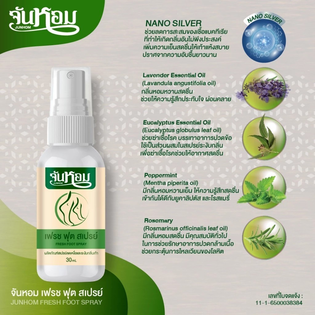 Junhom จันหอม แพ็คใหญ่ สเปรย์ดับกลิ่นเท้า ลดกลิ่นเท้า ปราศจากความอับชื้นนาน 24 ชั่วโมง ท้าให้ลอง