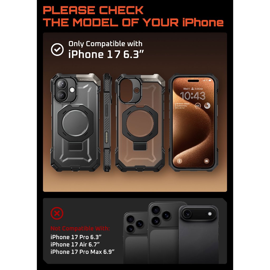 SUPCASE Unicorn Beetle Grip สําหรับ iPhone 17 6.3 "กรณีกล้องควบคุม Capture ปุ่มในตัวขาตั้งรองรับไร้สายชาร์จ Heavy Duty เคสโทรศัพท์แม่เหล็กสําหรับ iPhone 17 2025