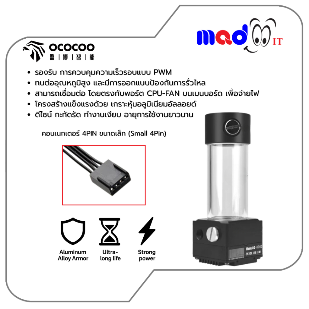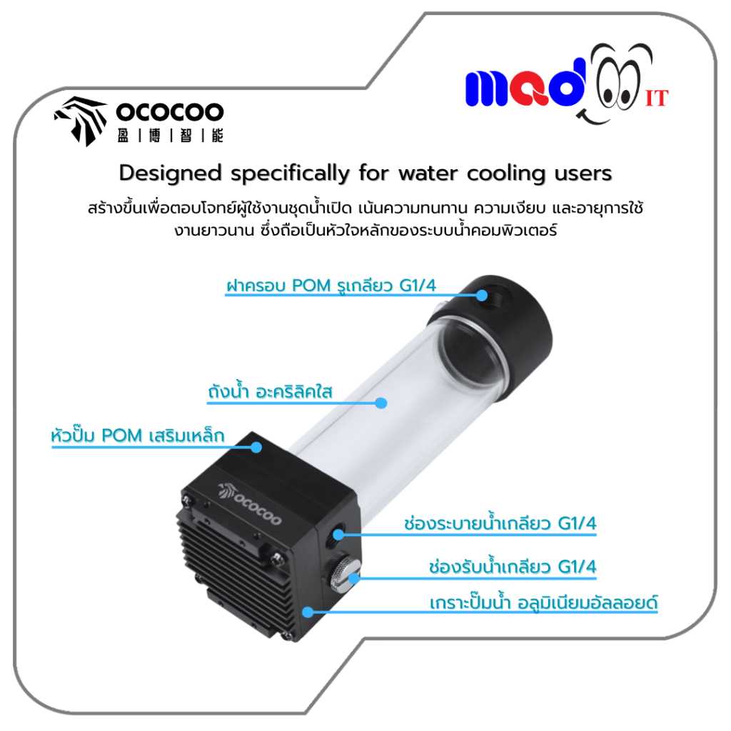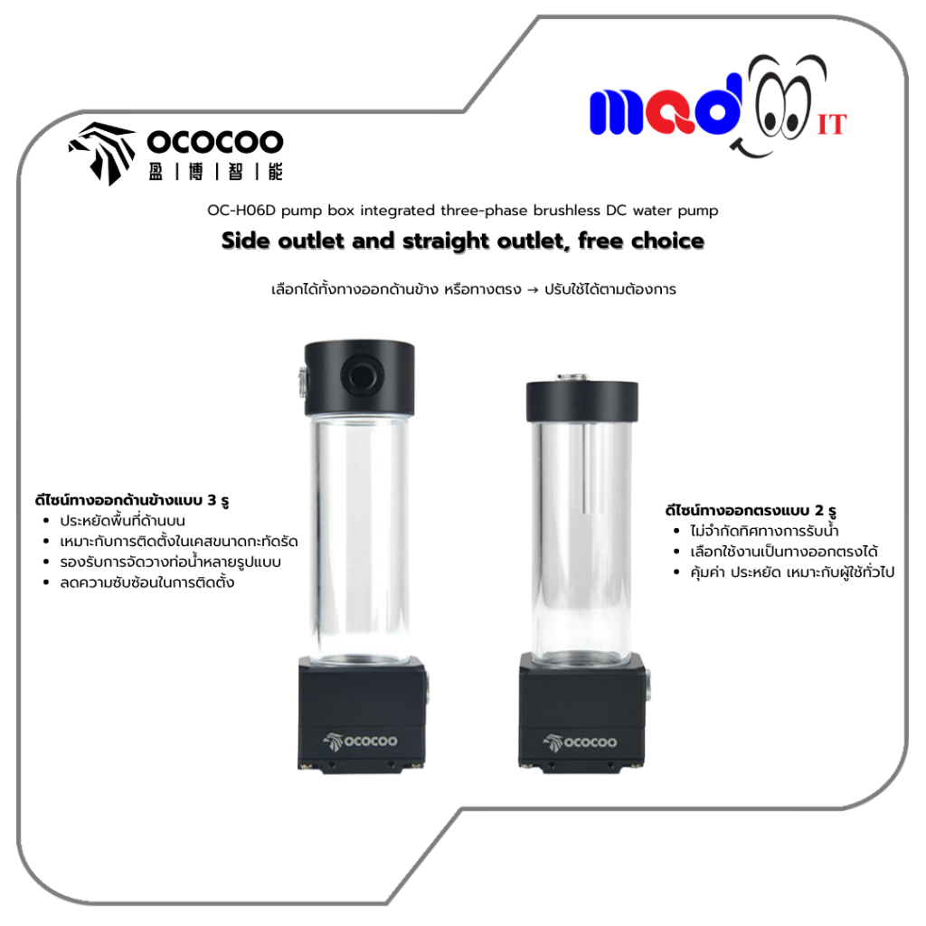 ปั๊มน้ำพร้อมแท้งค์ OCOCOO รุ่น H06D สำหรับชุดน้ำคอมพิวเตอร์ ปั๊มน้ำพร้อมถังน้ำ Water Cooling Pump