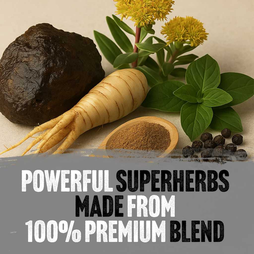 Shilajit 6000mg, Ashwagandha 4000mg, Maca Root, 3000mg Ginger 2000mg & Black Pepper – (30 Day Supply)