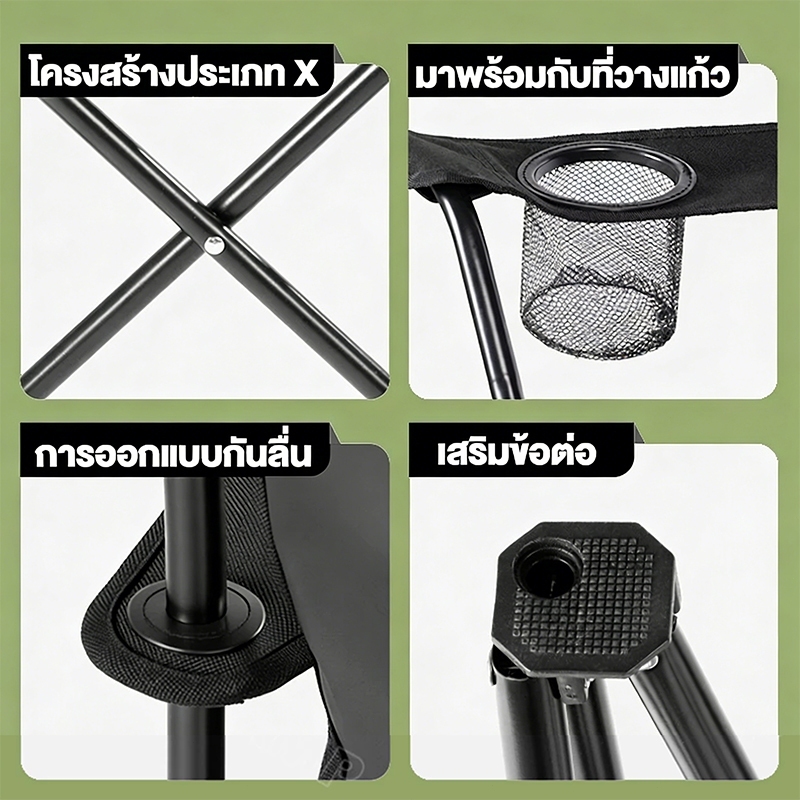 เก้าอี้แคมป์ปิ้ง พกพาพับได้ เก้าอี้ปิคนิค วงเล็บเหล็กคาร์บอนสูง