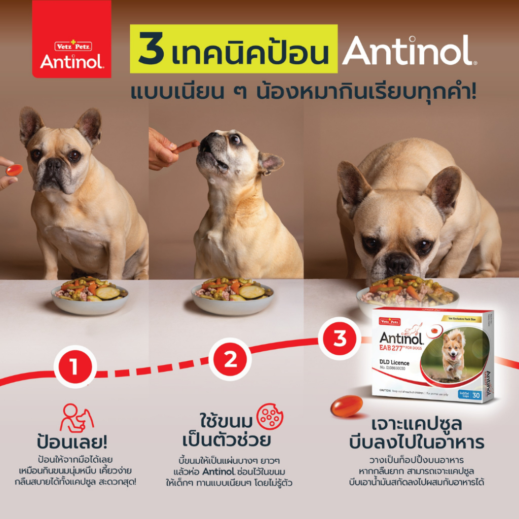 [2 กล่อง] Antinol Dog แอนทินอล อาหารเสริมสุนัข บำรุงข้อ ข้อต่อ ลดอักเสบ สกัดจากธรรมชาติ