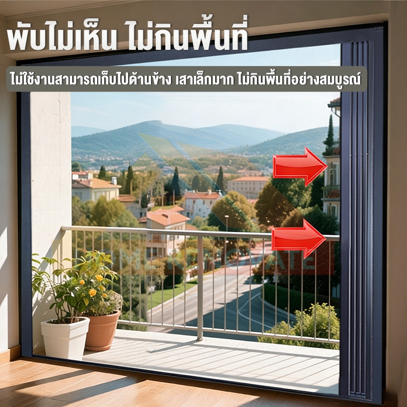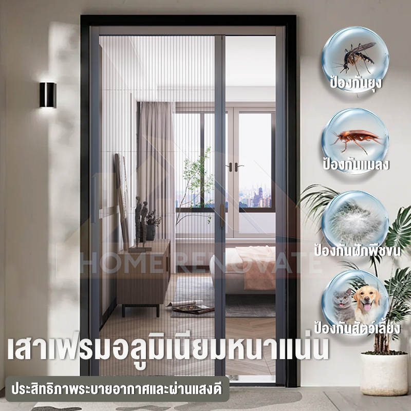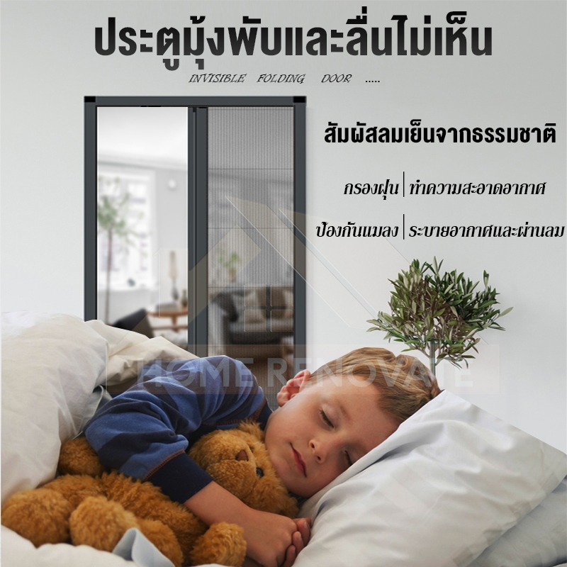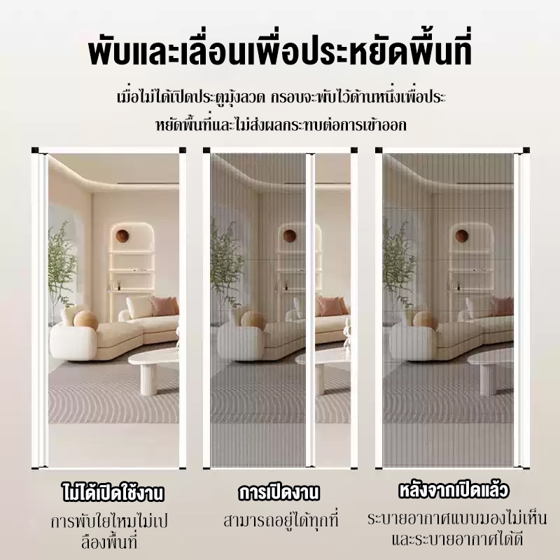 ประตูมุ้งจีบ ประตูพับ มุ้งประตูพับเก็บได้ กันยุง กรอบอลูมิเนียมอัลลอยด์ ติดตั้งง่าย ไม่ต้องเจาะผนัง