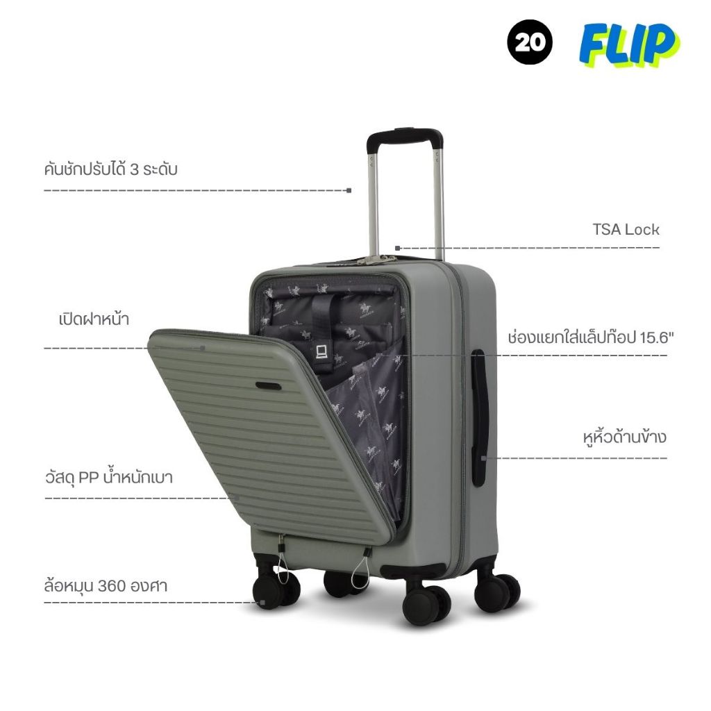 Giogracia Polo Club กระเป๋าเดินทางเปิดฝาหน้าได้ รุ่น FLIP (GIO12) วัสดุ ABS ใส่คอม 15.6" TSA Lock ขยายจุเพิ่ม [เขียว]