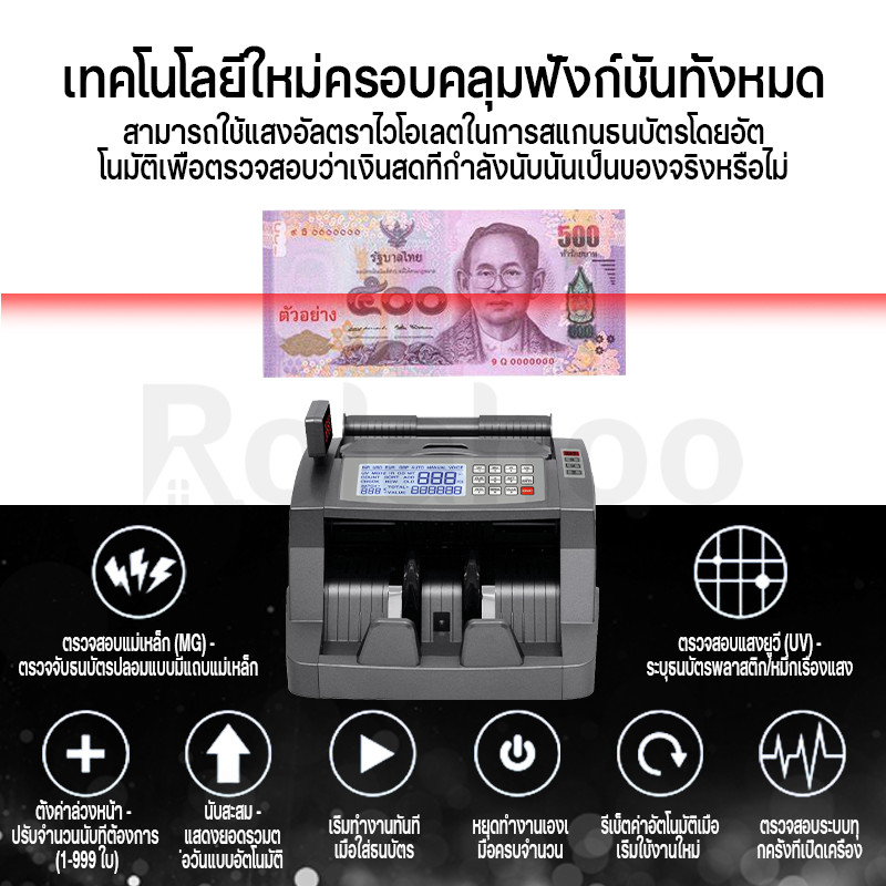 รับประกัน2ปี✅เครื่องนับธนบัตรรุ่นใหม่ 3หน้าจอ ปลอม Bill Counter รุ่นMaxpower-6300 คำนวณมูลค่ารวมได้/ตรวจธนบัตร T