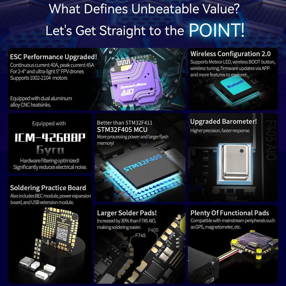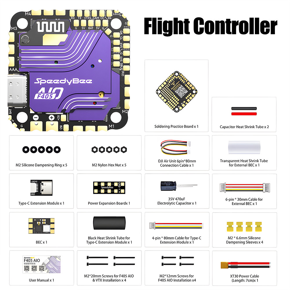 SpeedyBee F405 AIO 40A Flight Controller 3S-6S ICM-42688P Gyro 25.5x25.5 มม.สําหรับ 2-4 "Ultra-Light 5" FPV Dronesไร้สายAIO DSHOT600/300