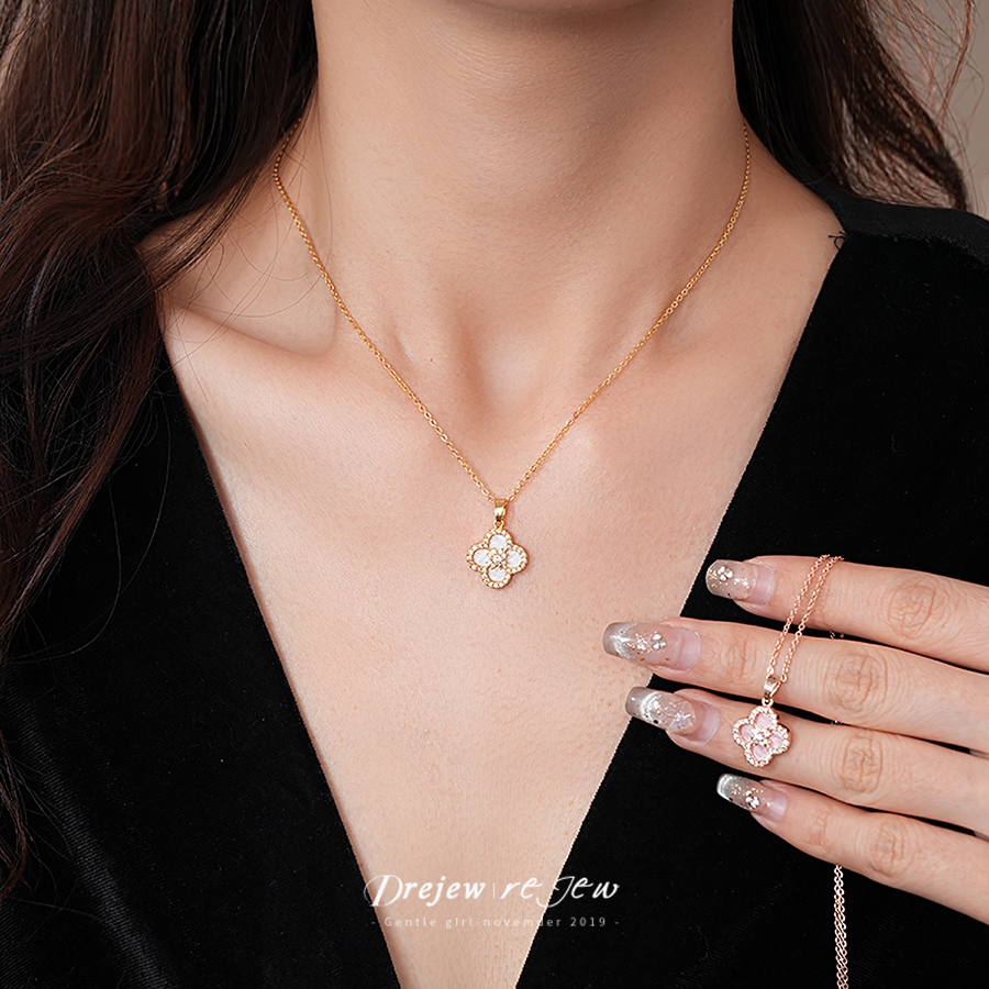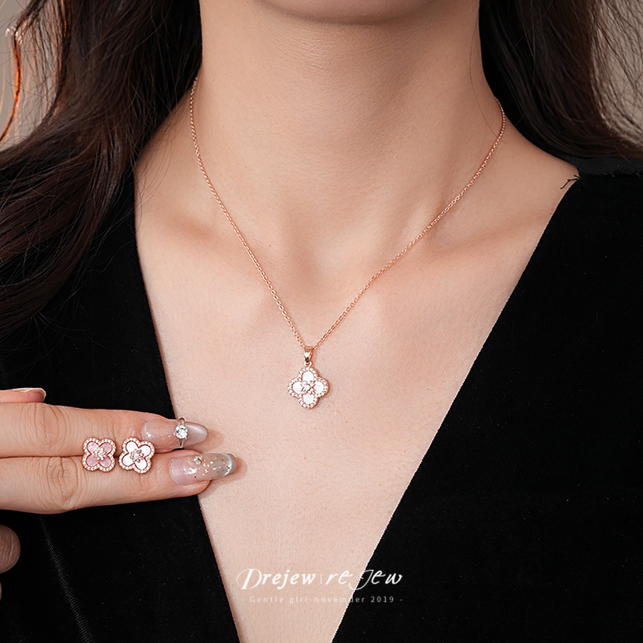 เดรช เกาหลีที่เรียบง่ายเพทายดอกไม้สี่ใบสร้อยคอสร้อยข้อมือต่างหูชุด
