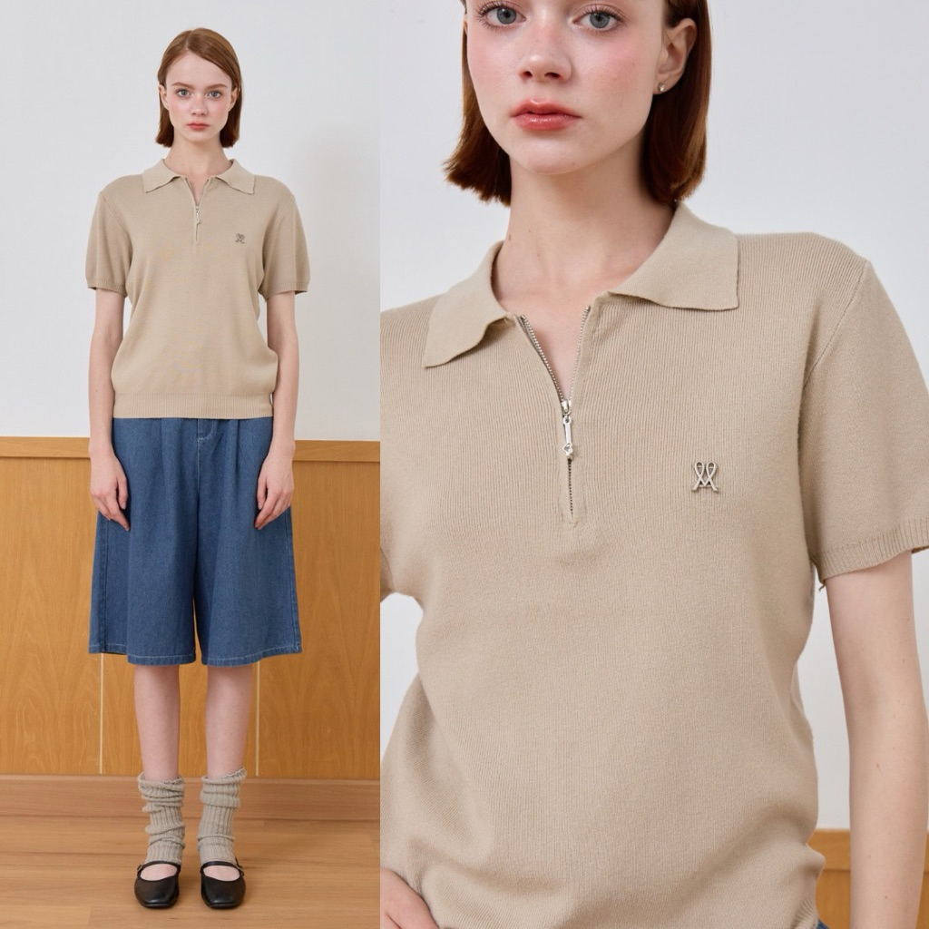(9 สี) ZIPPER TOP เสื้อไหมพรมคอปกแขนสั้น ซิปหน้า 3 size T100 - MESAVE