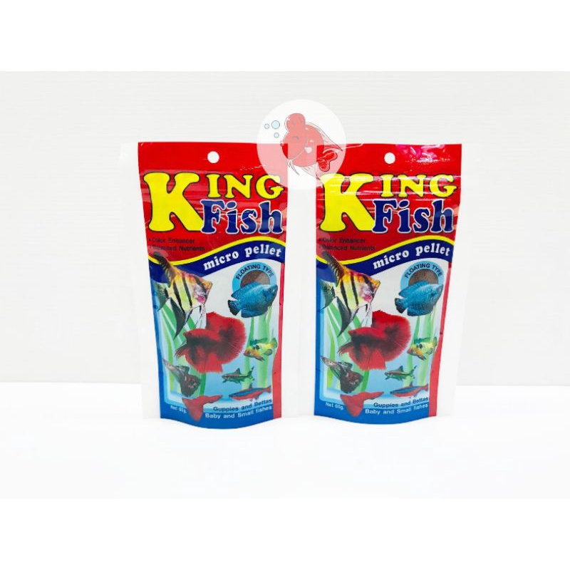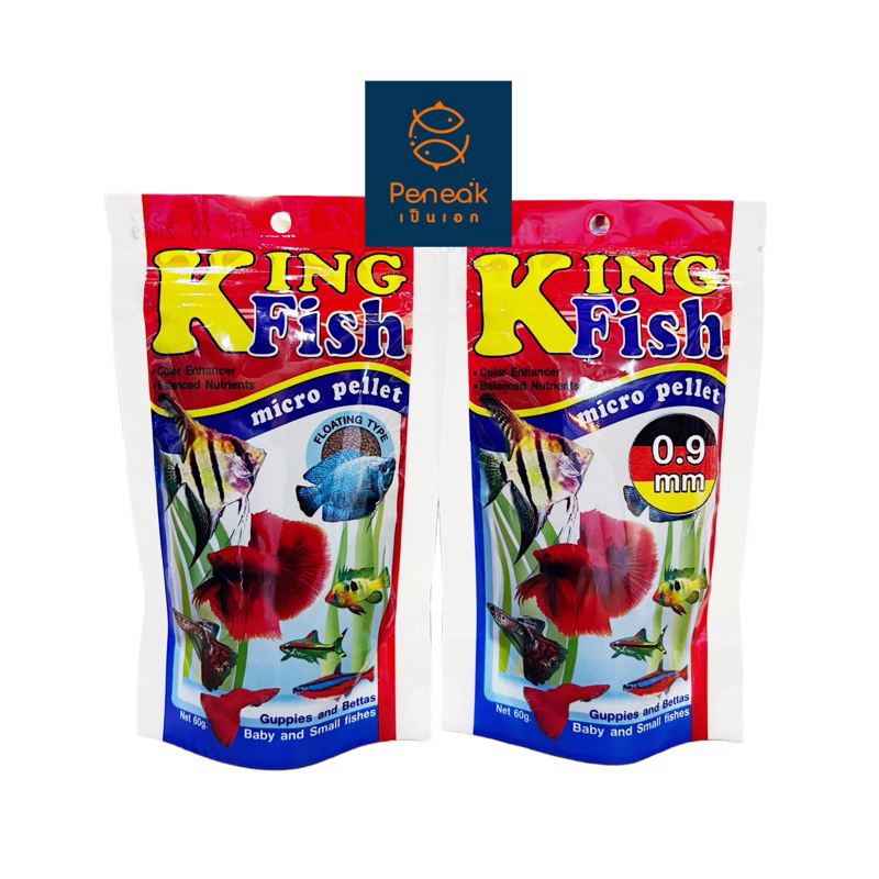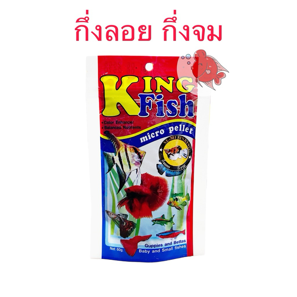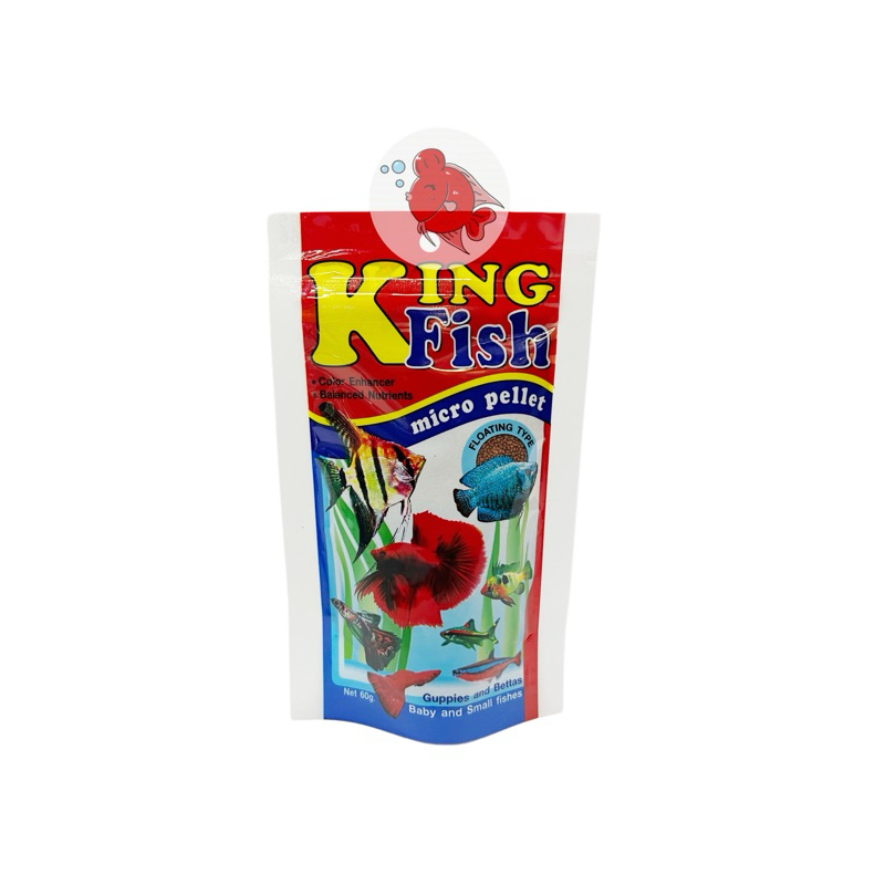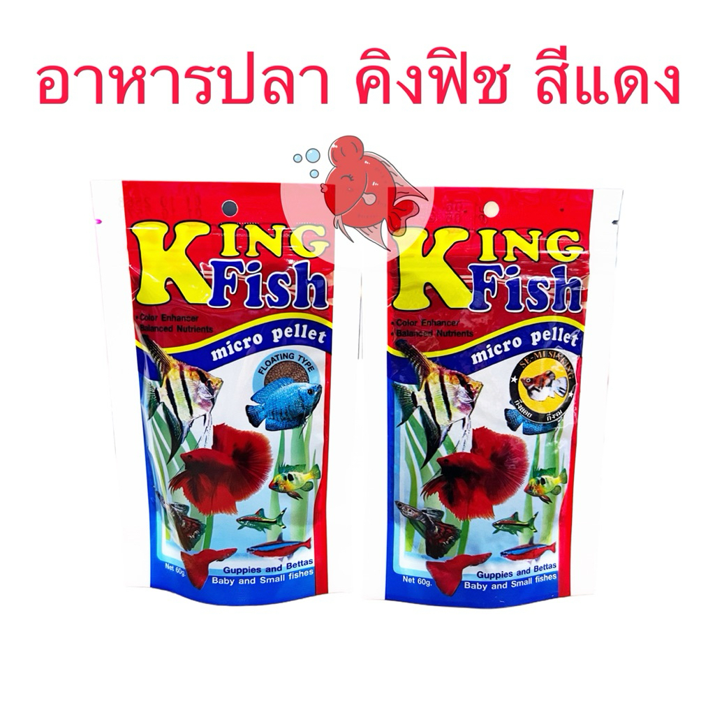 คิงฟิช สีแดง สำหรับปลาสวยงาม ปลาขนาดเล็กทุกชนิด เม็ดลอย Micro Pellet เม็ดขนาดเล็กกว่าเม็ดจิ๋ว น้ำหนัก 60 กรัม