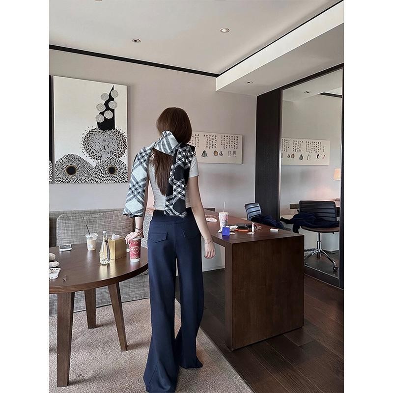 MOSESQUEEN กางเกงขากว้างทรงตรงหลวมเอวสูง เพื่อความสบายและสไตล์ขี้เกียจ ใช้งานได้หลายโอกาส #63213
