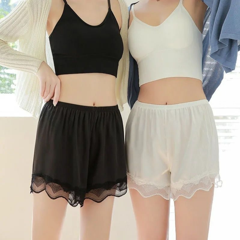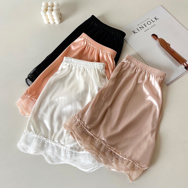 กางเกงผ้าซาติน (G24) กางเกงขาสั้นผู้หญิง ใส่นอน ปลายขาแต่งลูกไม้ เอวยืดได้ผ้านิ่ม บางเบาใส่สบาย