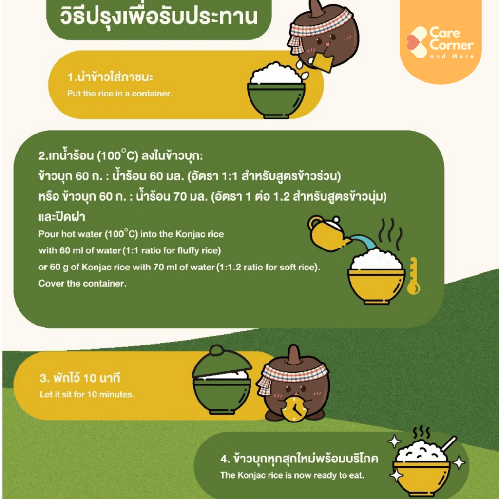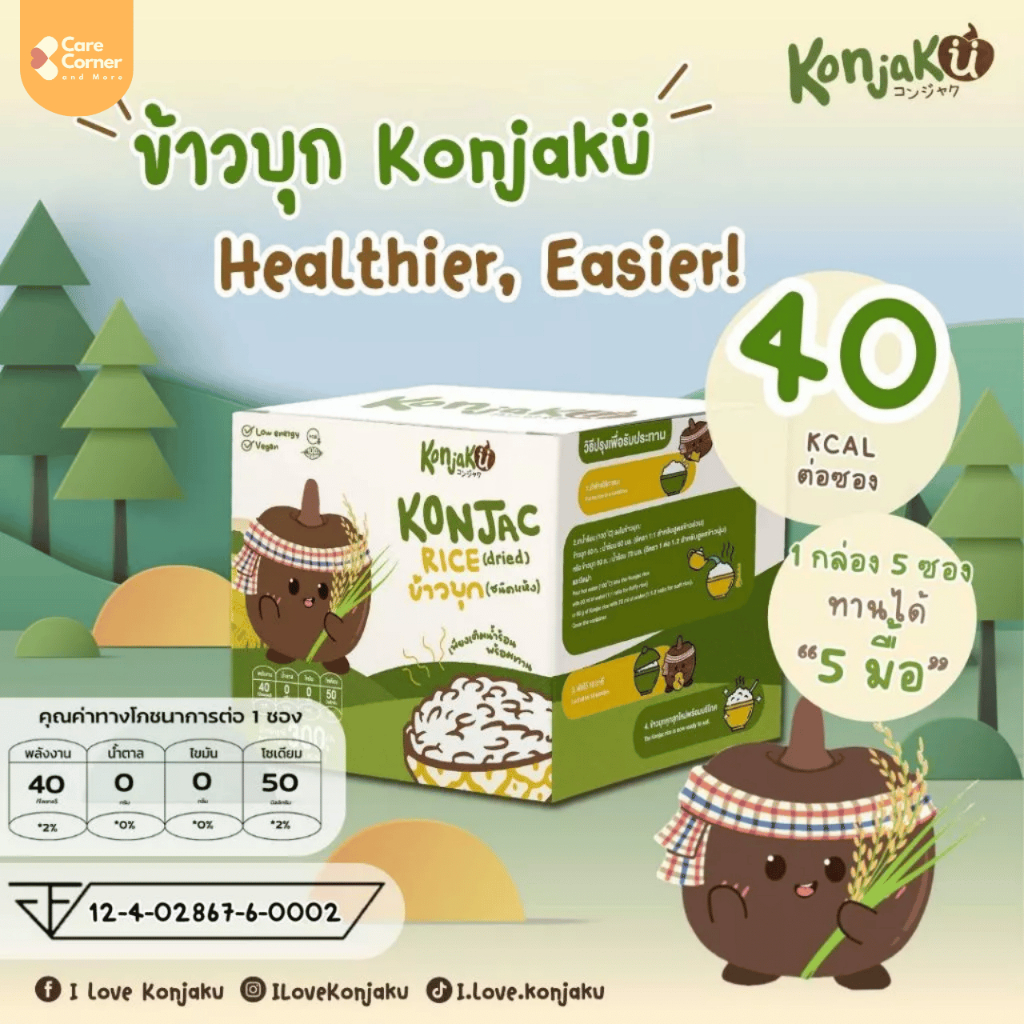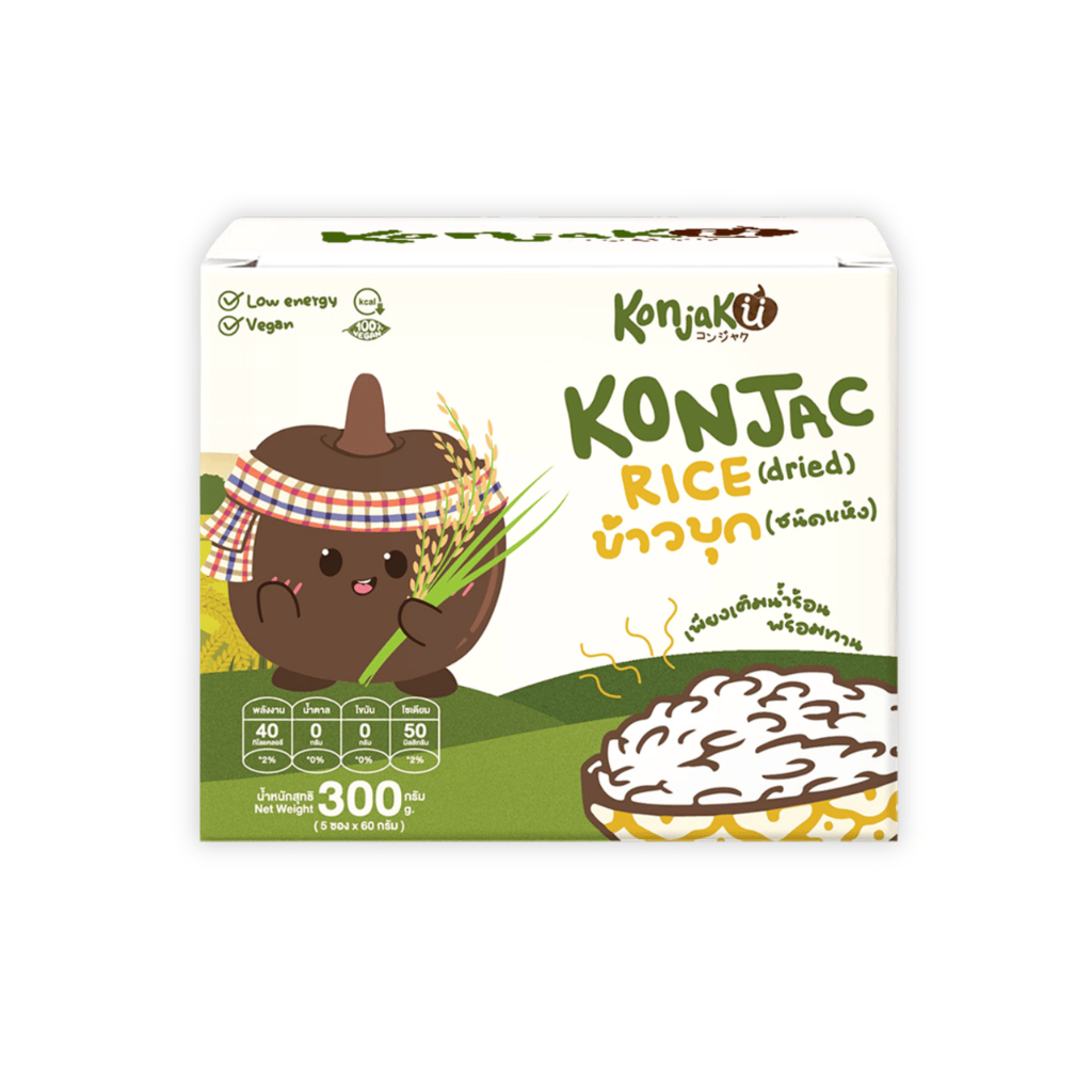 Konjaku คอนจากุ ข้าวบุก คีโต ไร้แป้ง (60 กรัม x 5 ซอง) ข้าวไร้แป้ง อาหารสุขภาพ อาหารเพื่อสุขภาพ Konjac Rice เบาหวาน ไต